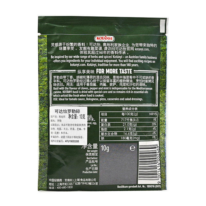 可达怡罗勒碎袋装10g奥地利进口