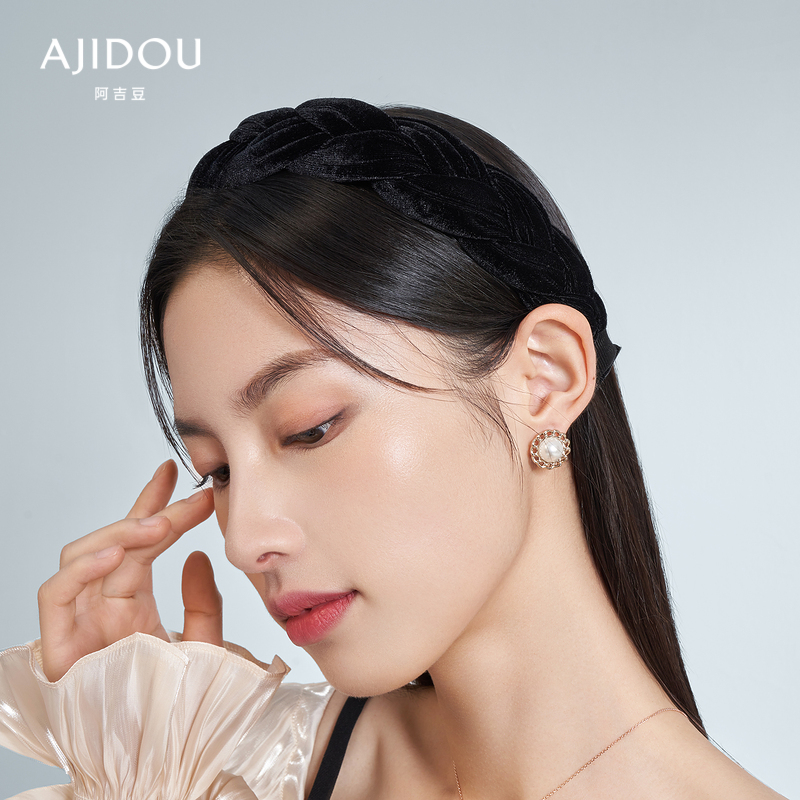 AJIDOU阿吉豆发箍高颅顶黑色丝绒
