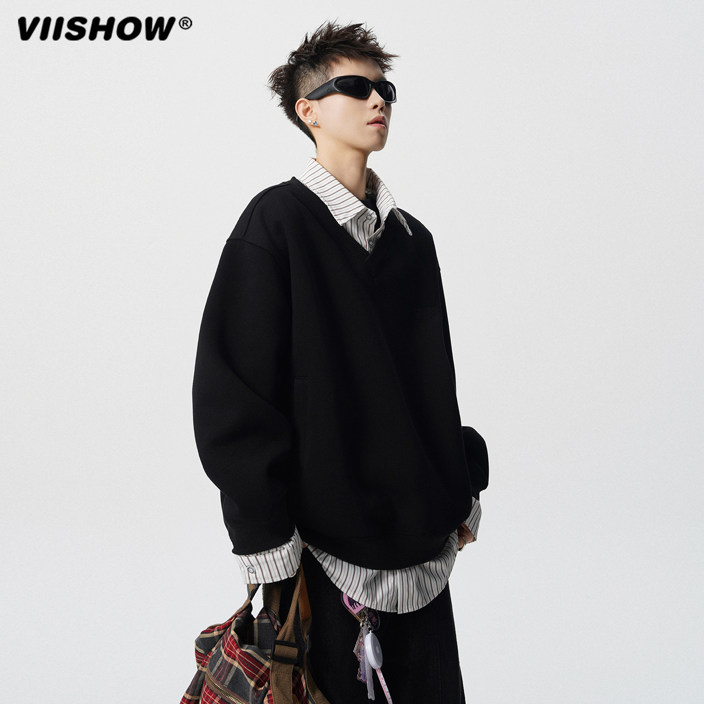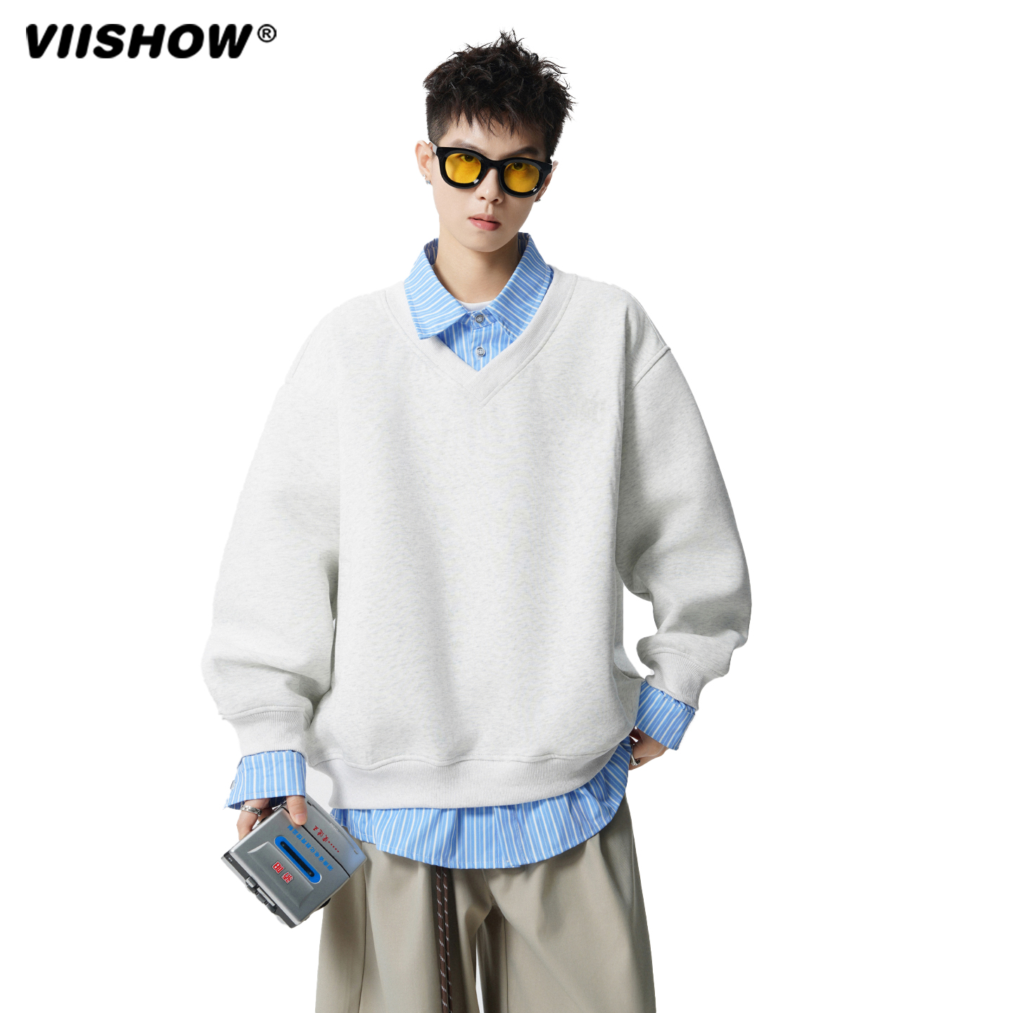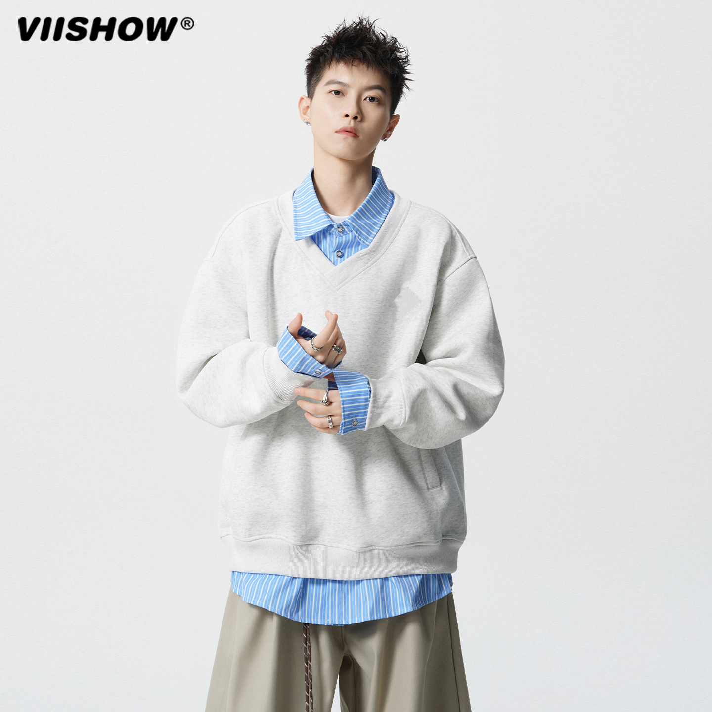 VIISHOW美式假两件衬衫领卫衣男秋cleanfit宽松内搭打底衫潮流