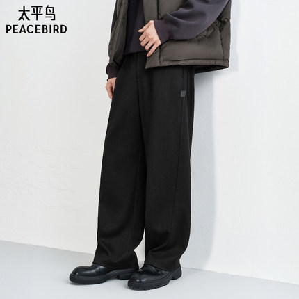 【商场同款】太平鸟男装 提花针织黑色直筒抽绳休闲裤B1GMF4460