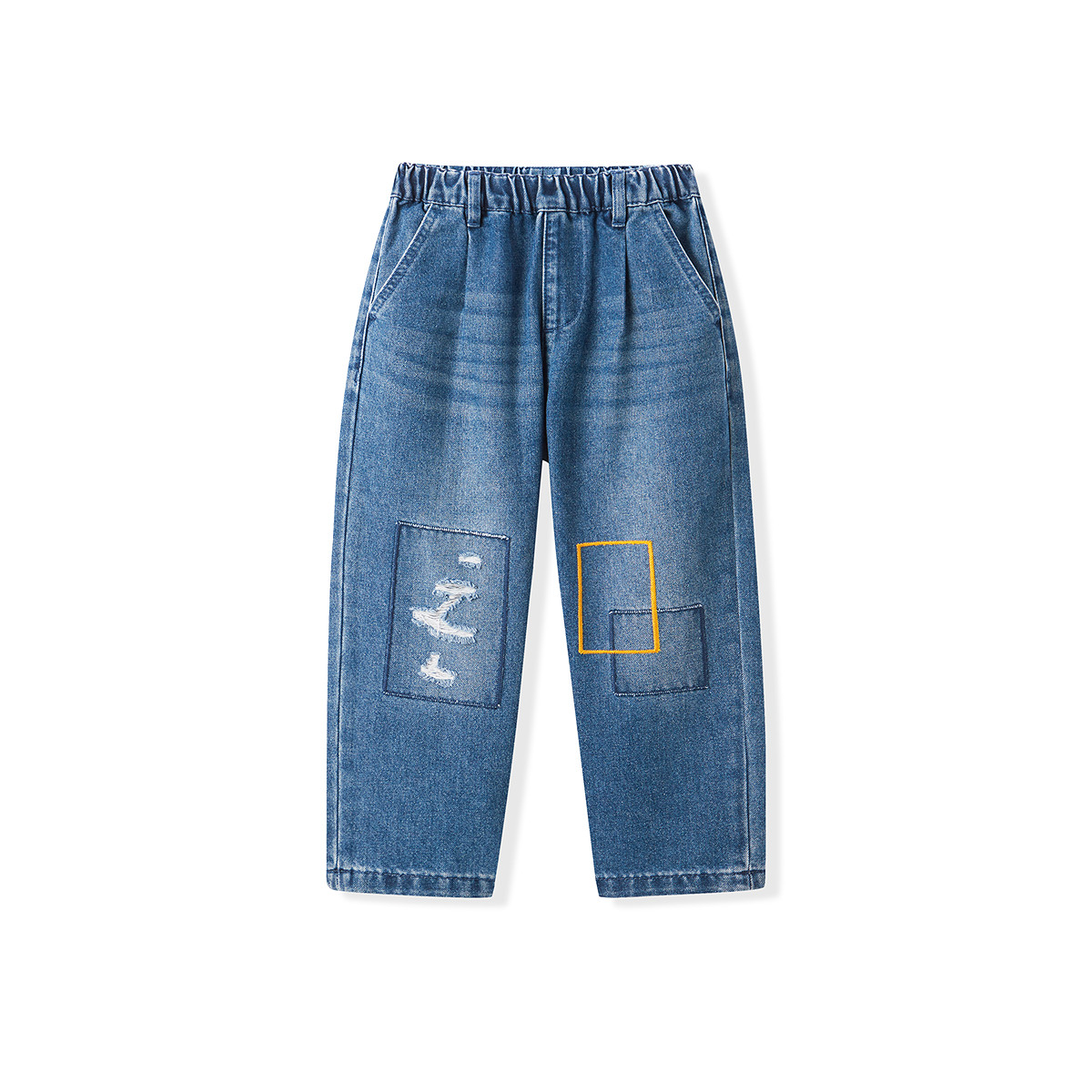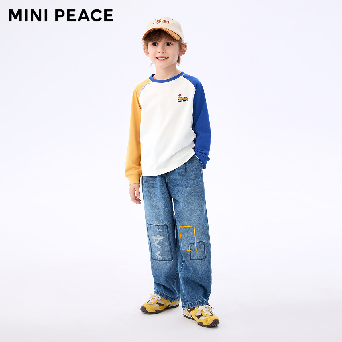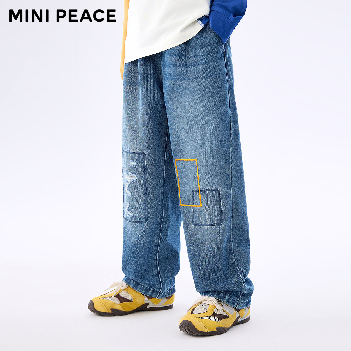 MINIPEACE太平鸟童装男童牛仔裤秋季新款儿童裤子潮撞色拖地长裤