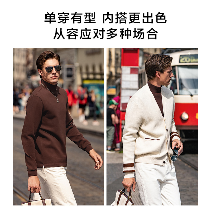 MrBu布先生热胆长袖打底t恤男士半高领秋冬柔软保暖上衣KT01879