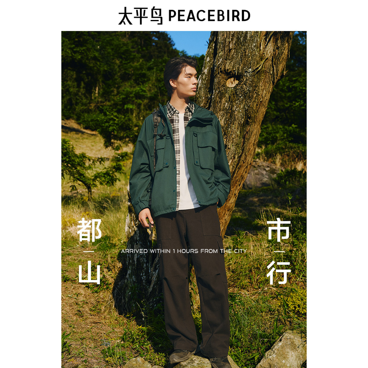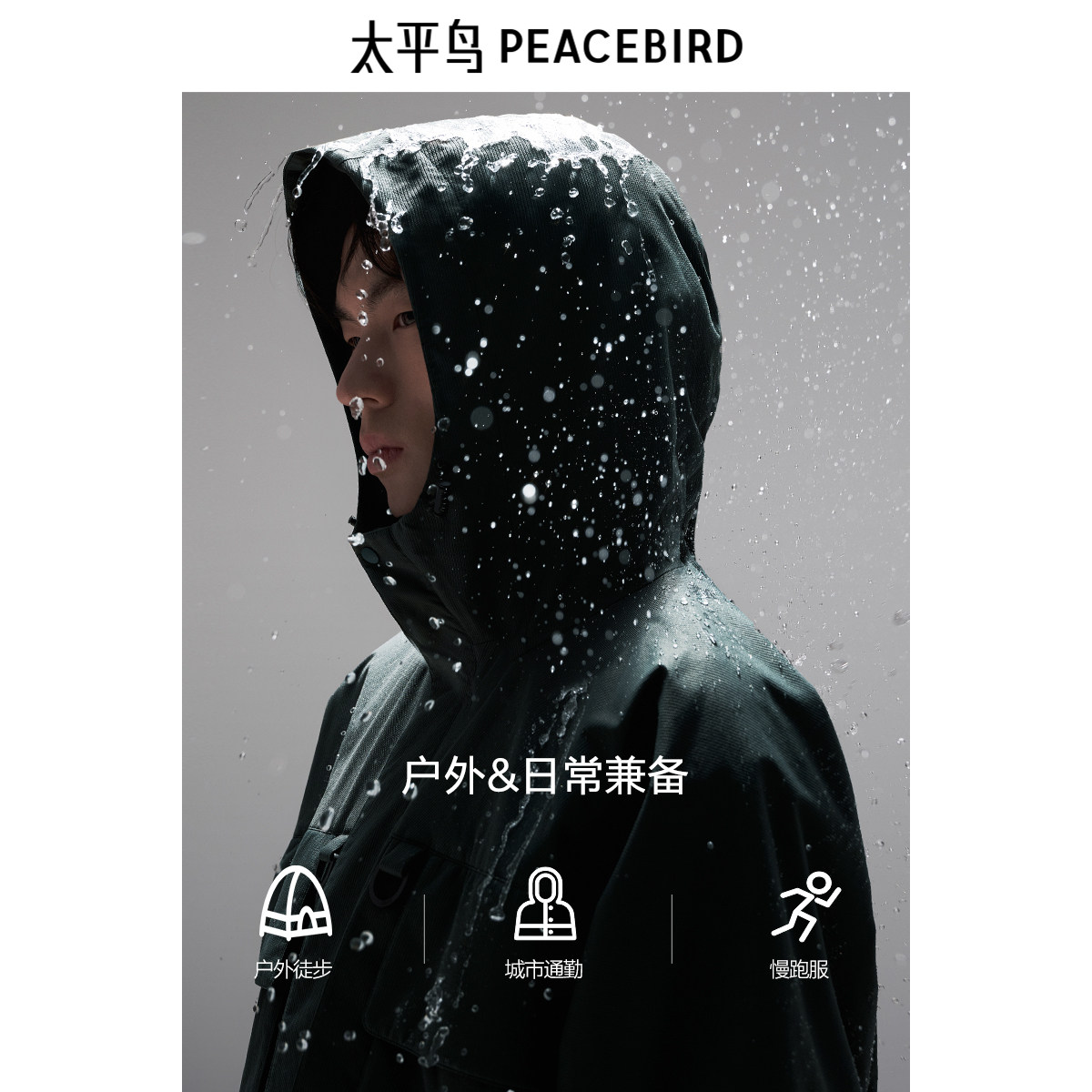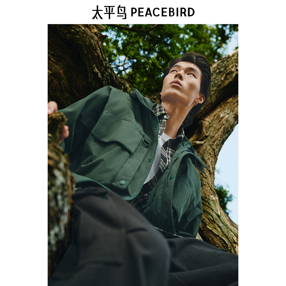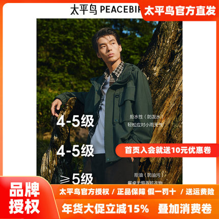太平鸟男装户外登山冲锋外套秋新款墨绿色夹克宽松休闲茄克外套潮
