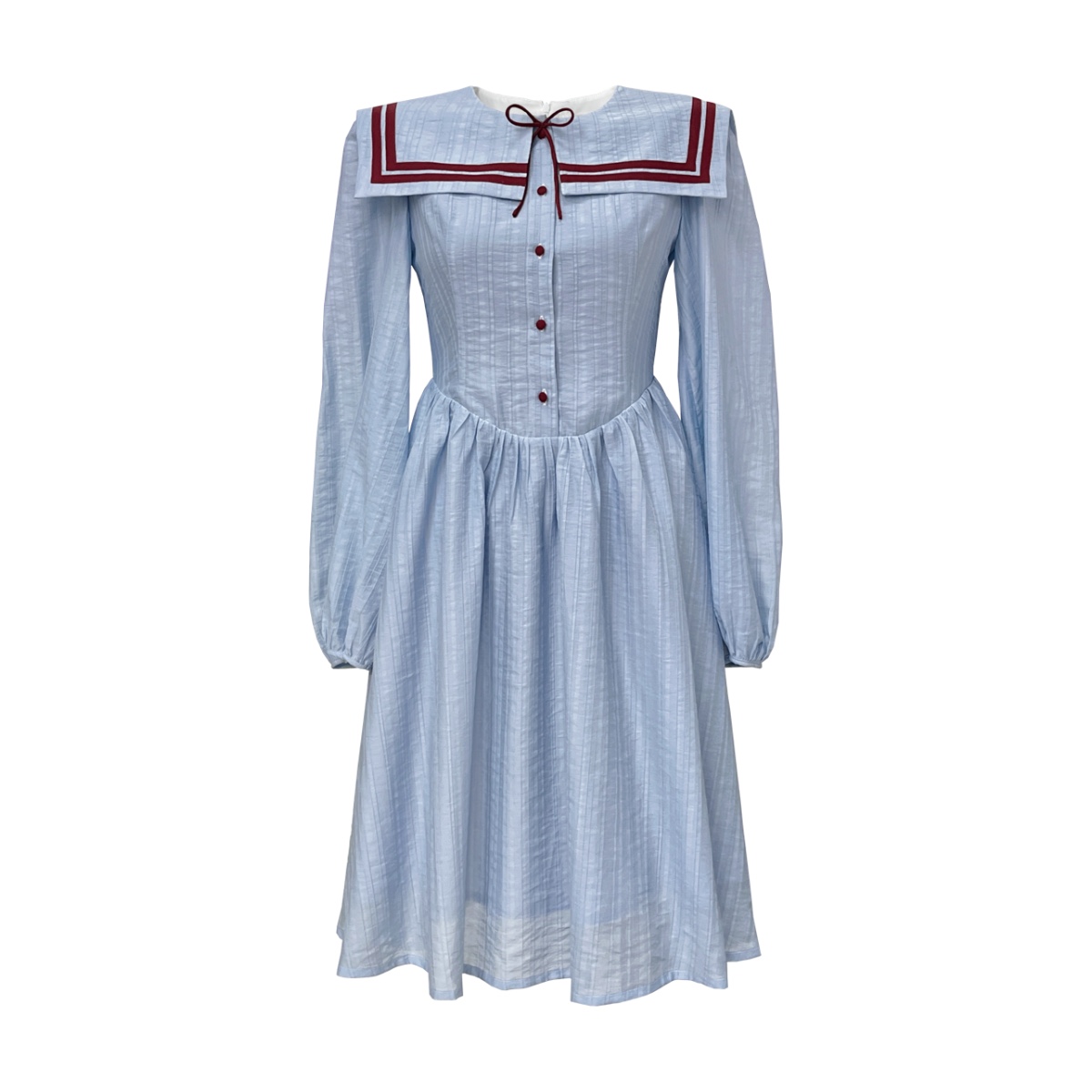航海系浅蓝海军领蝴蝶结连衣裙