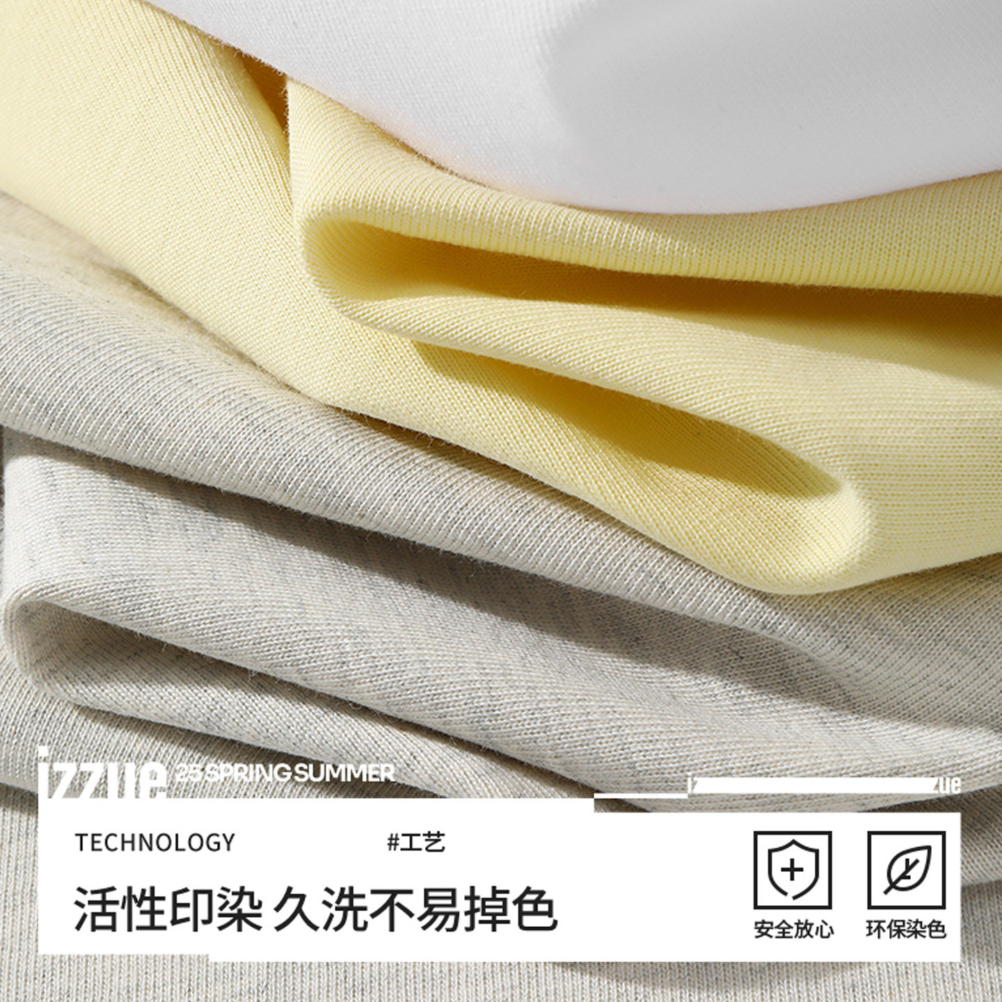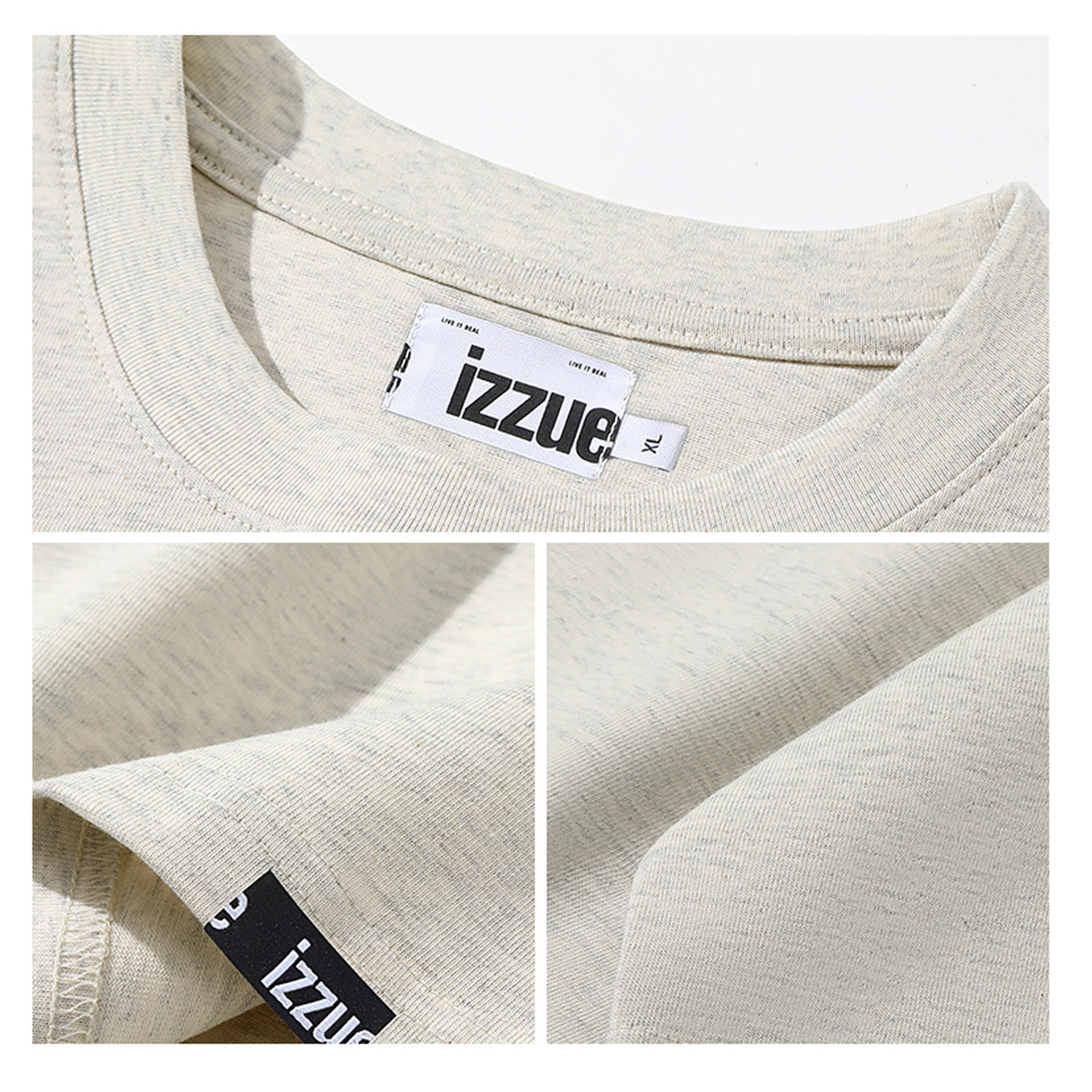 it izzue官方短袖T恤男纯棉黑色夏季休闲宽松圆领五分袖上衣女4P