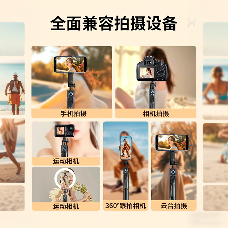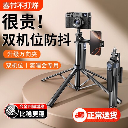 演唱会相机支架手机自拍杆2025新款通用双机位落地三脚架旅游便捷拍照神器通用360度旋转手持防抖pocket3