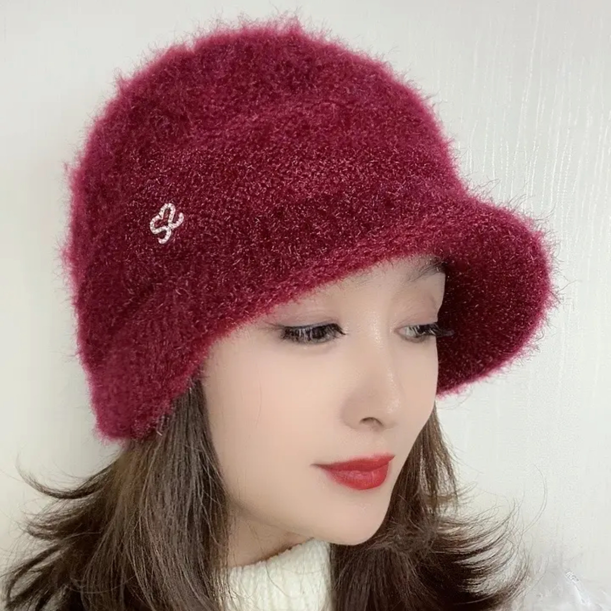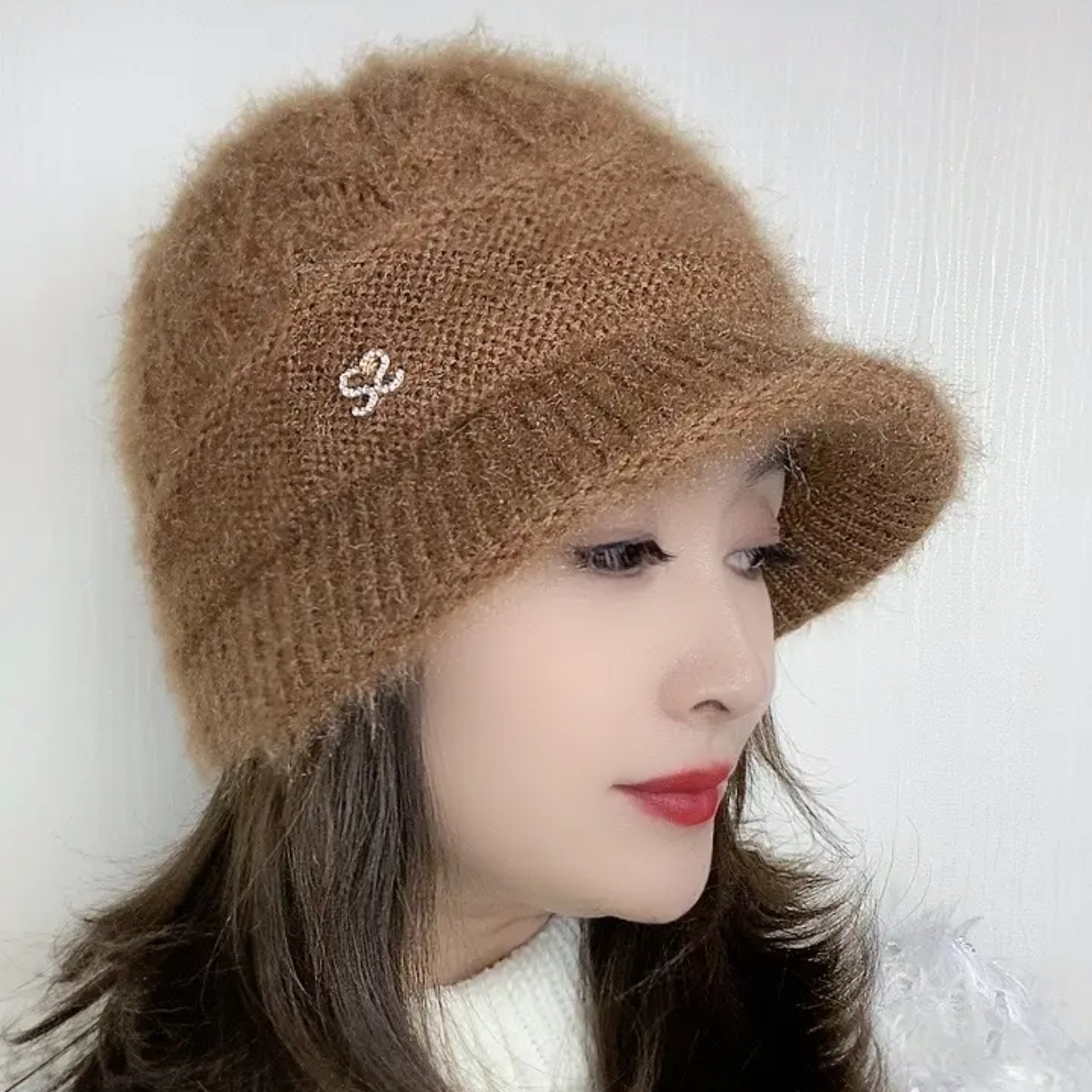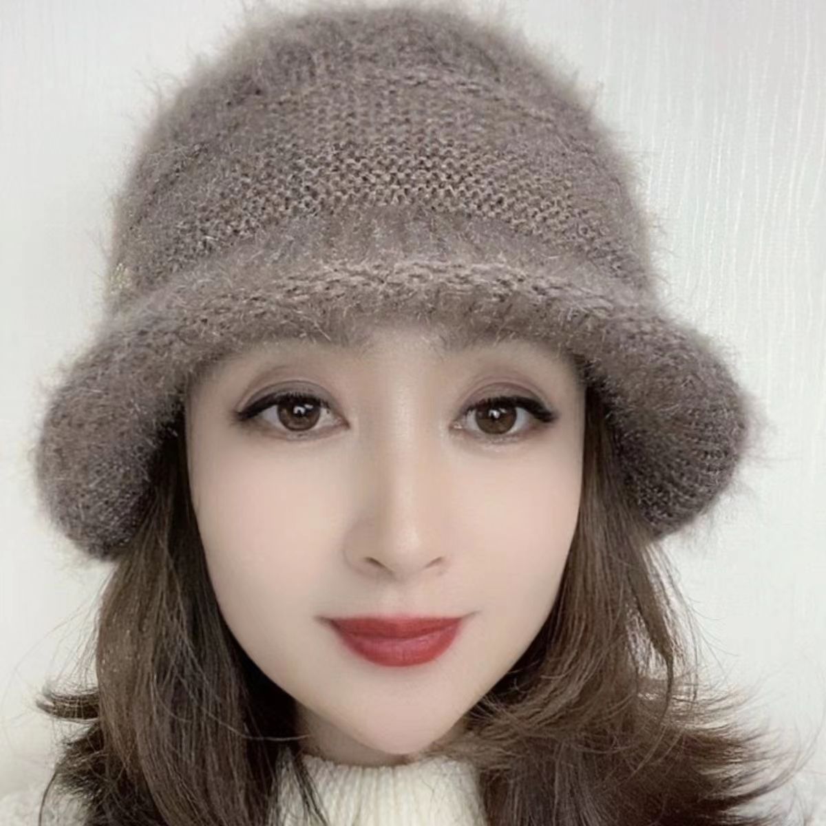 帽子女士秋冬季2025新款针织松鼠绒帽檐时尚冬天保暖百搭厚毛线帽