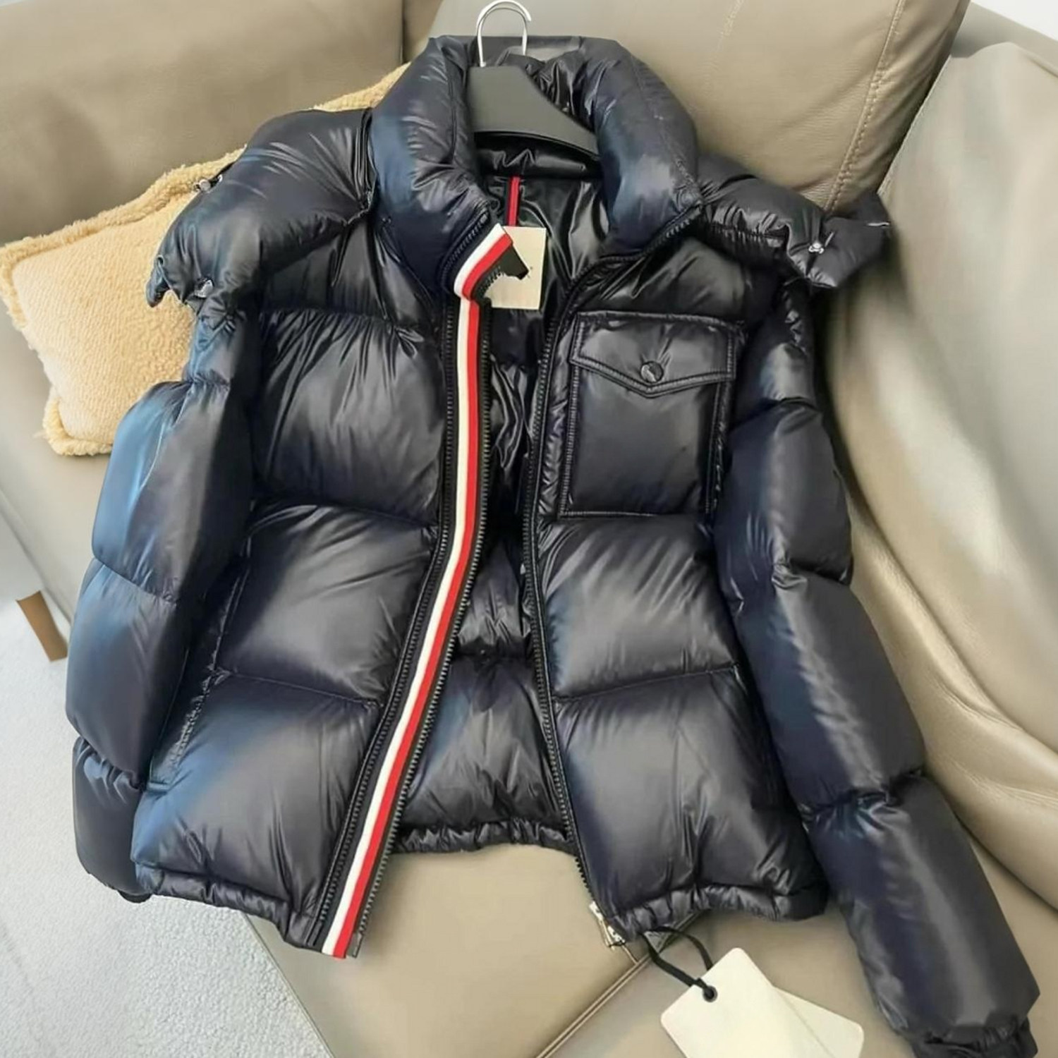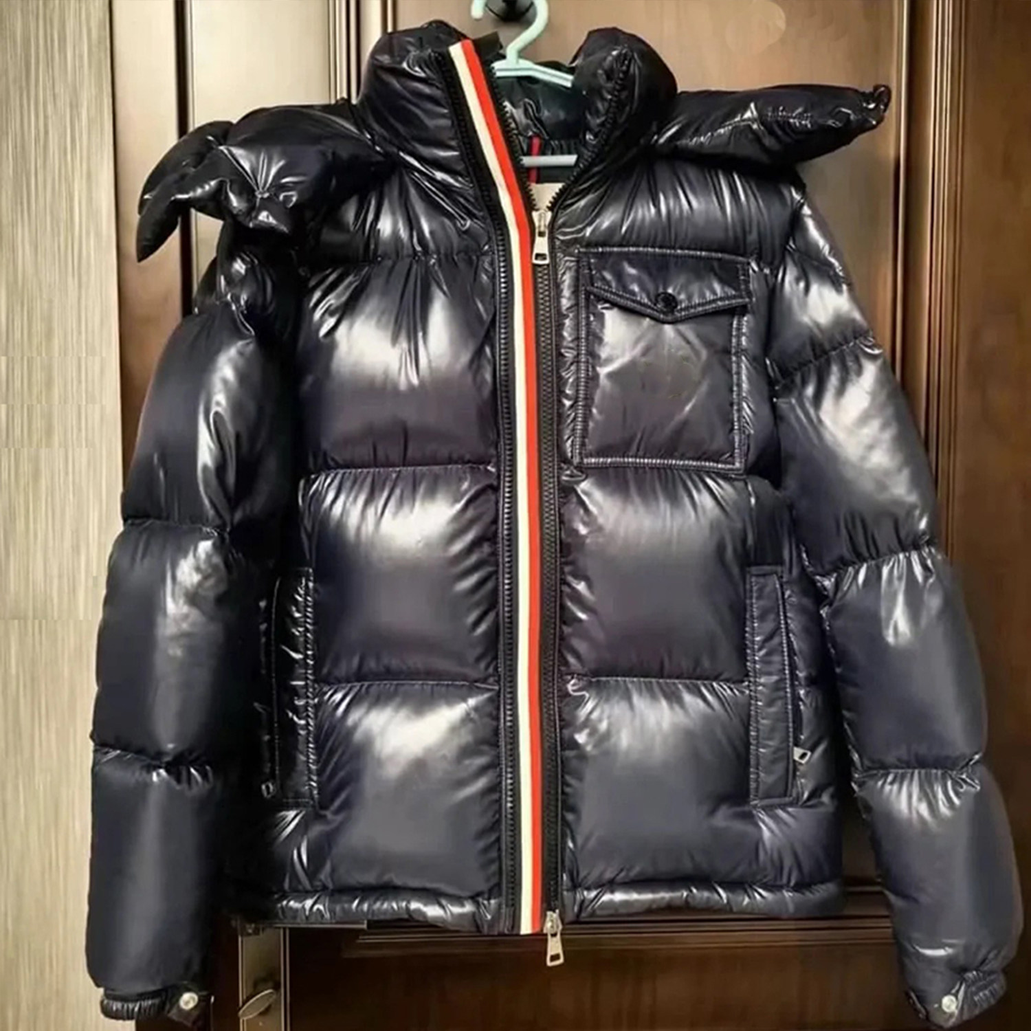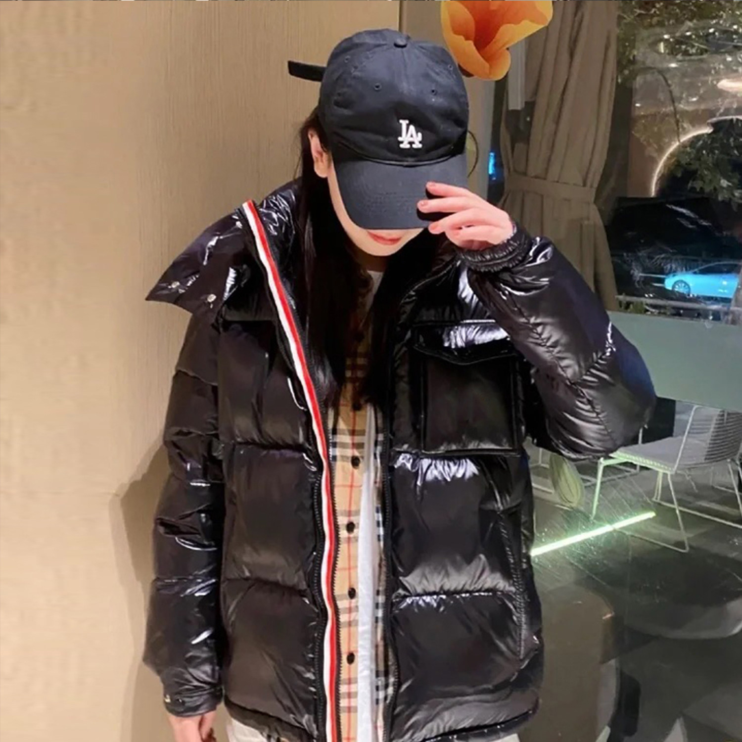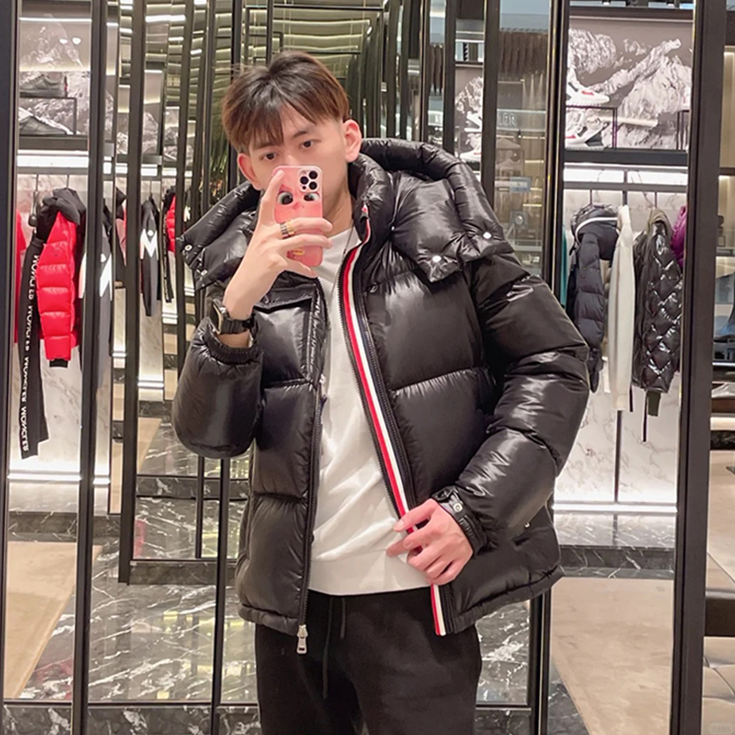 蒙家高端经典彩条织带羽绒服男女款蒙口得加厚保暖白鹅绒连帽外套