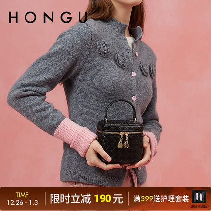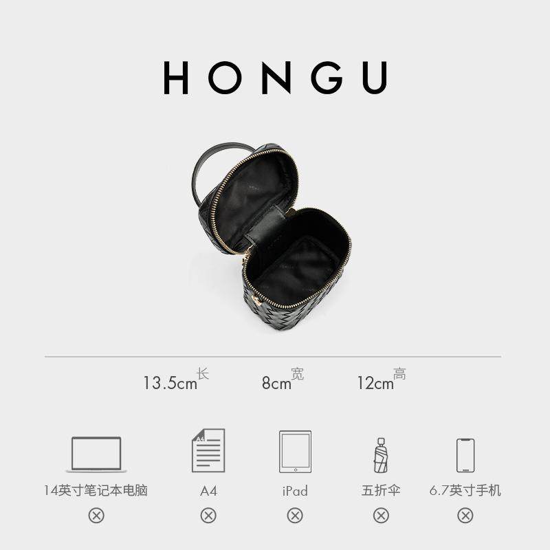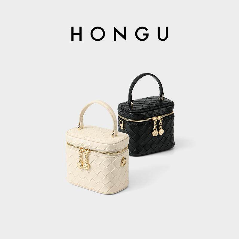 HONGU/红谷小香风盒子包百搭手拎斜挎包绣线菱格包日韩小清新包包