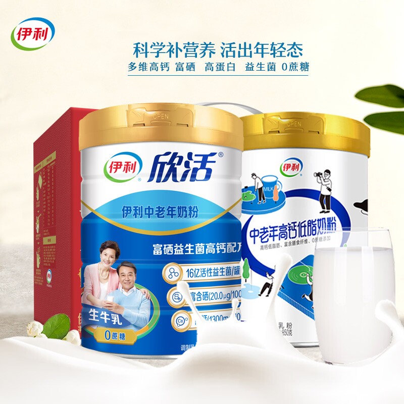 伊利欣活中老年高钙奶粉正品官方旗舰店老年人高蛋白营养牛奶长辈