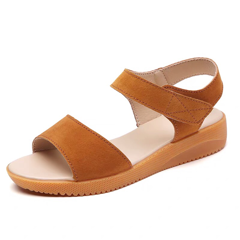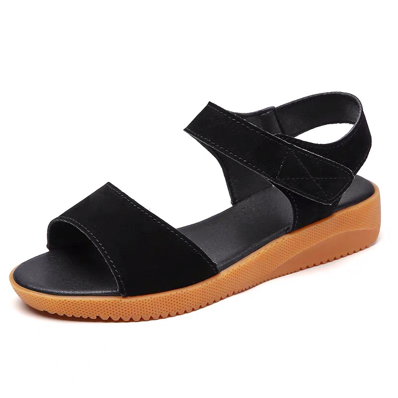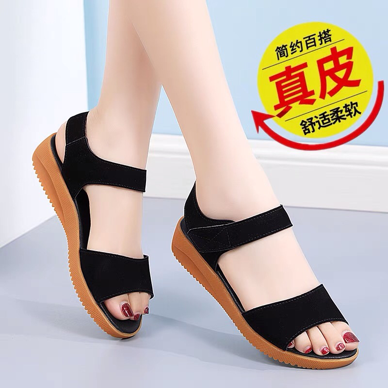 鸿远高品质真皮牛筋底平跟凉鞋