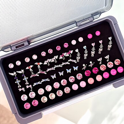耳钉专用收纳盒多卡位亚克力海绵耳饰耳环首饰收纳防尘便携大容量