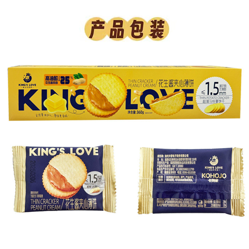 国王的赞赏花生酱夹心薄饼干超薄马铃薯饼干奶巧克力酥脆饼干休闲