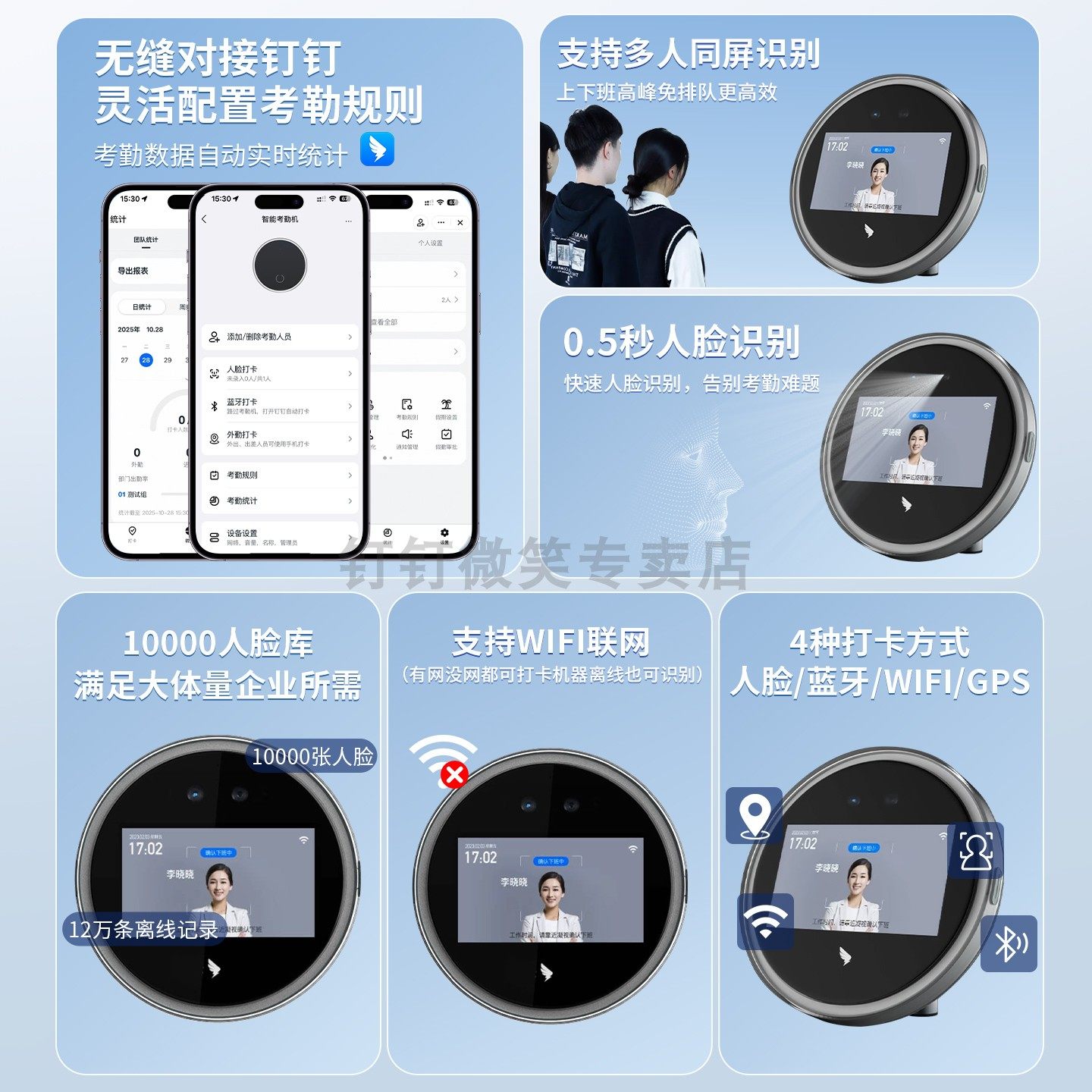钉钉M2pro智能人脸识别考勤机