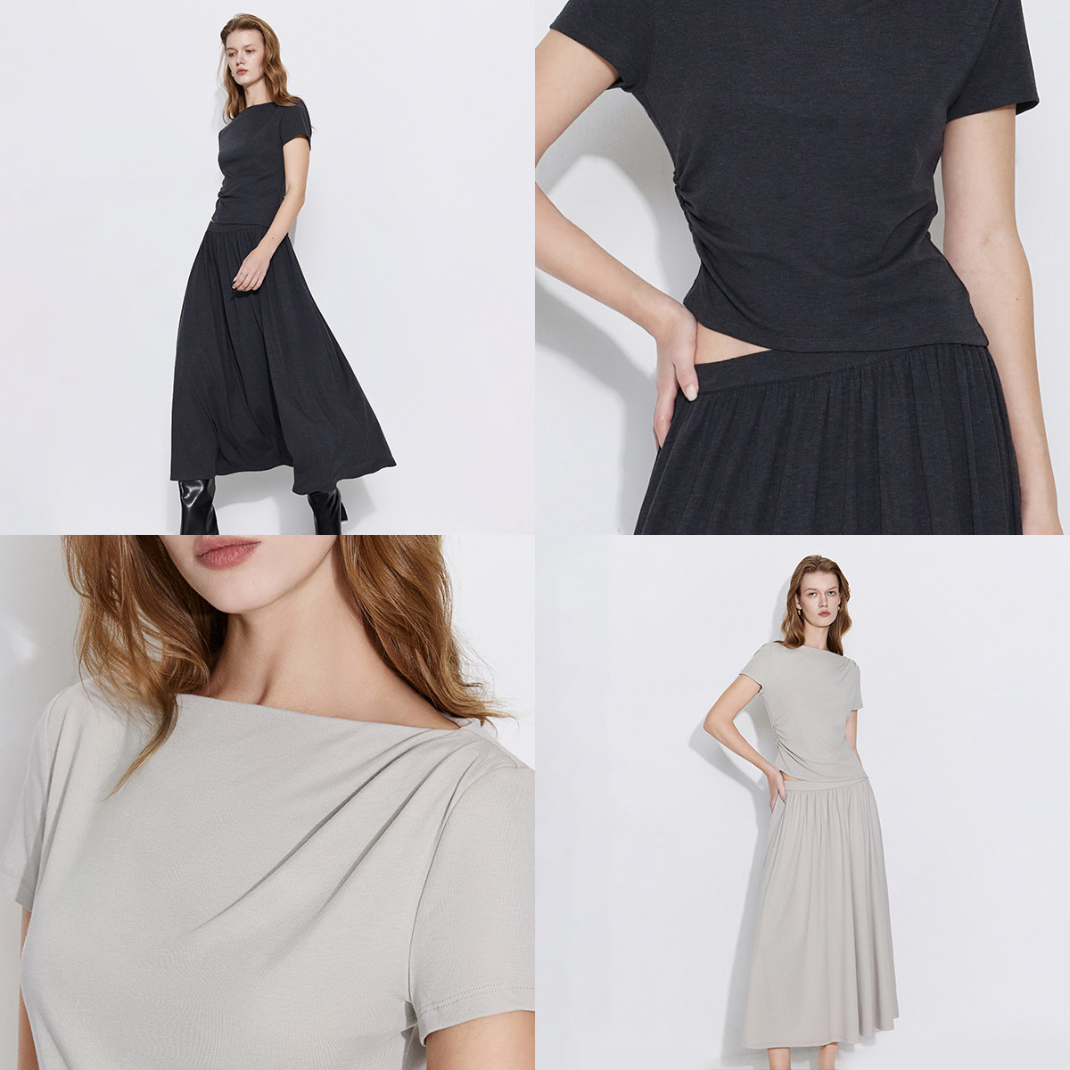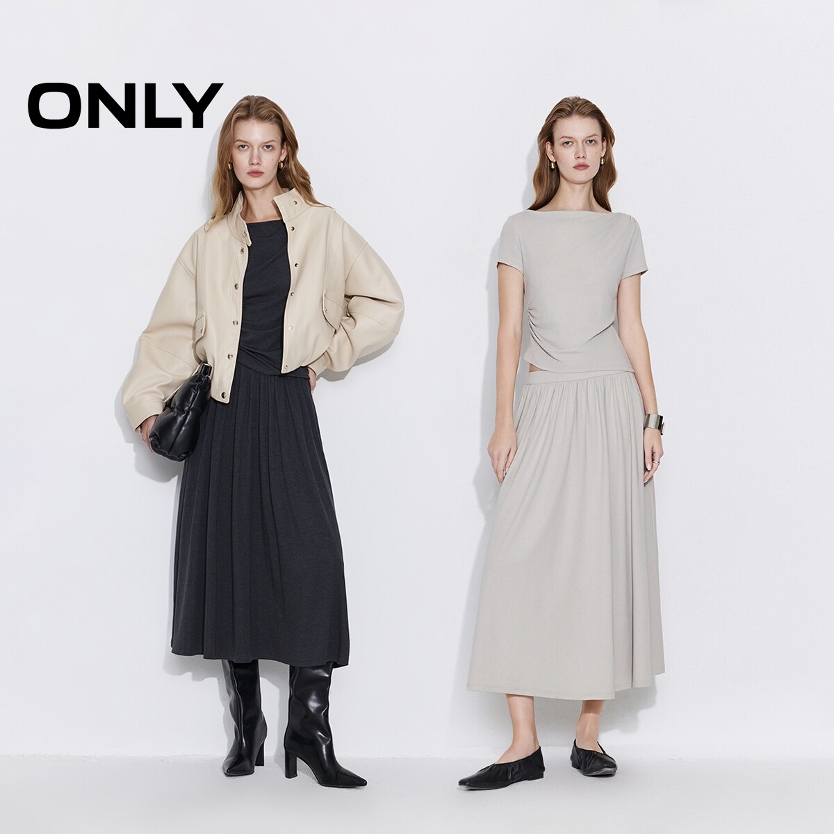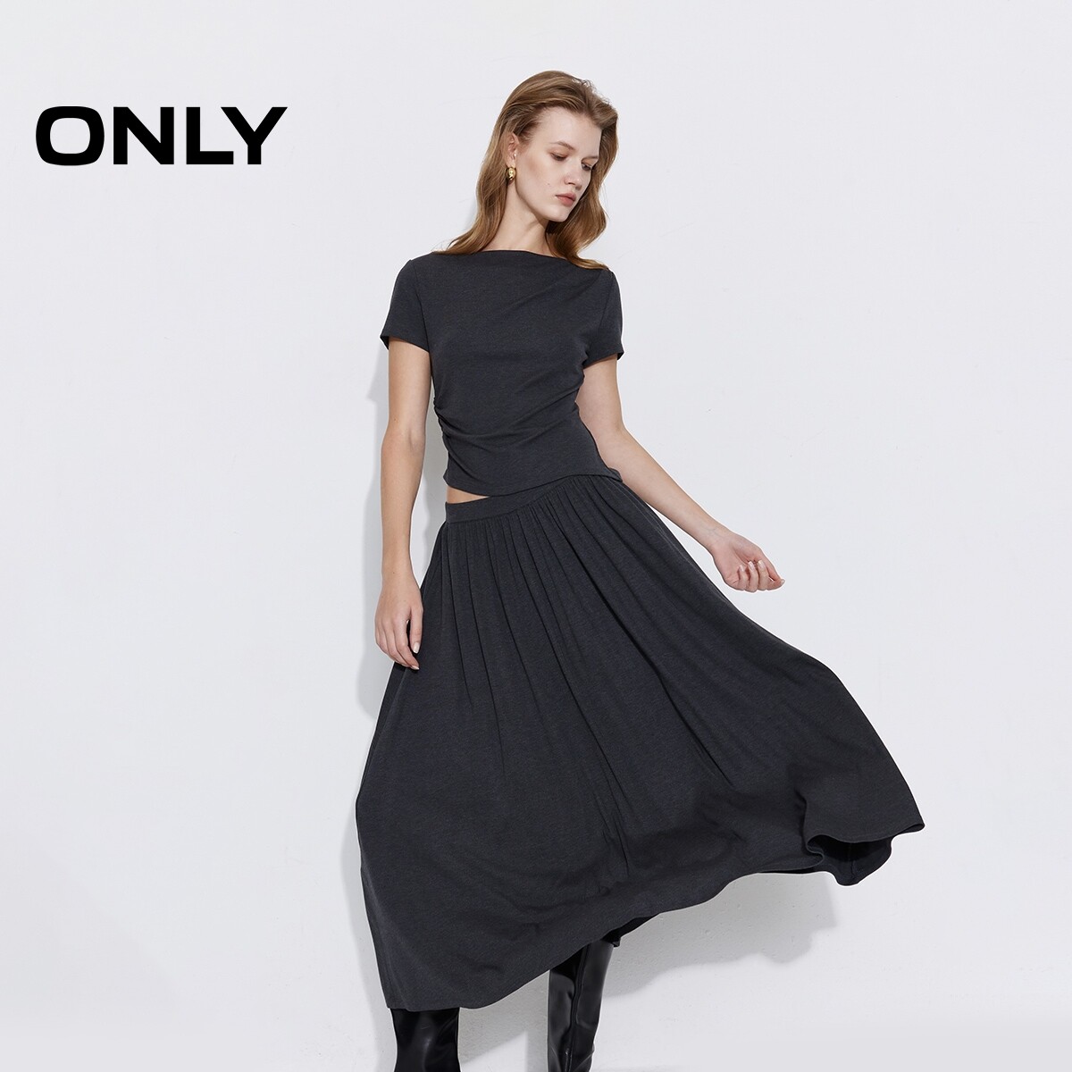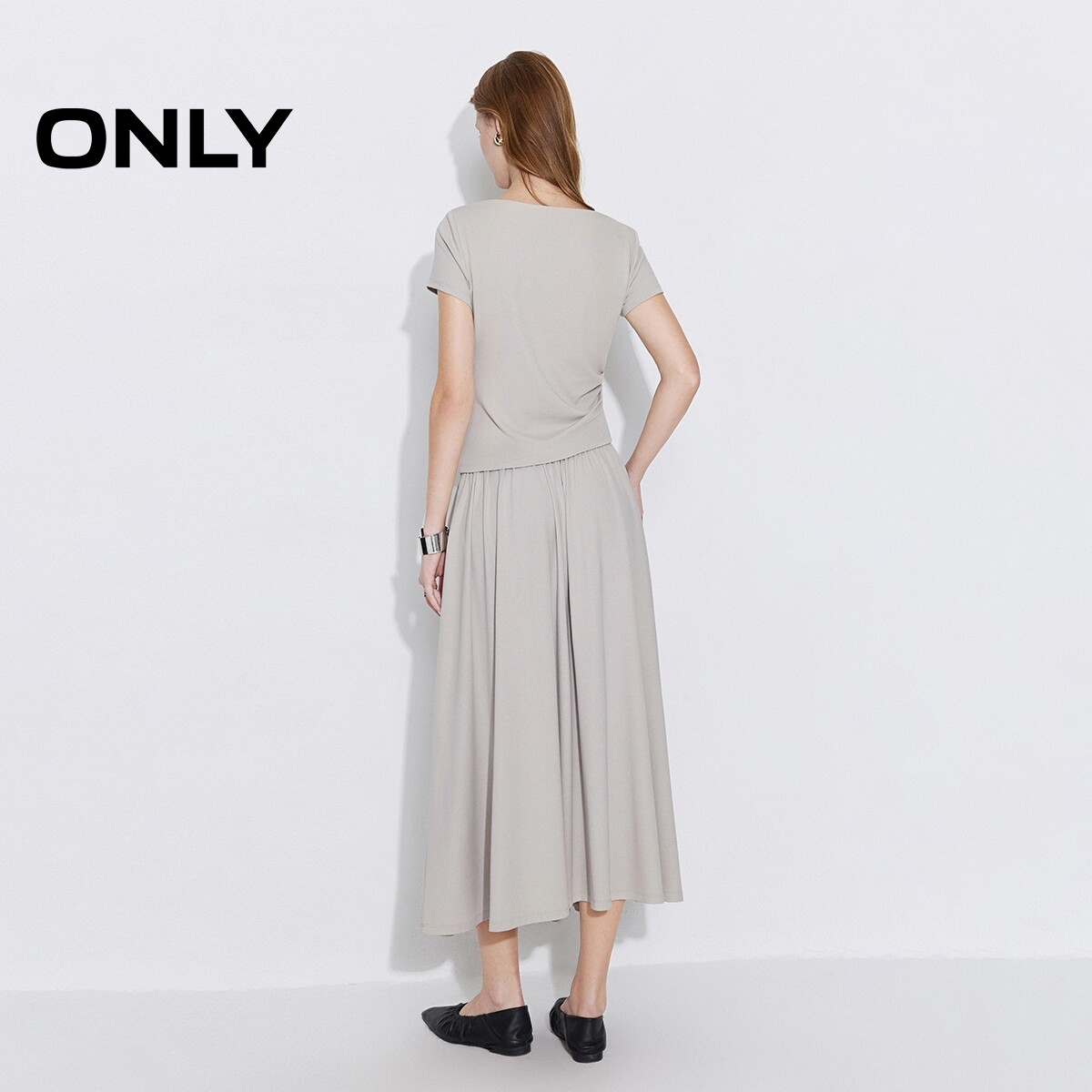 ONLY2026春季新款不规则显瘦捏褶舒适亲肤套装长裙伞裙连衣裙女