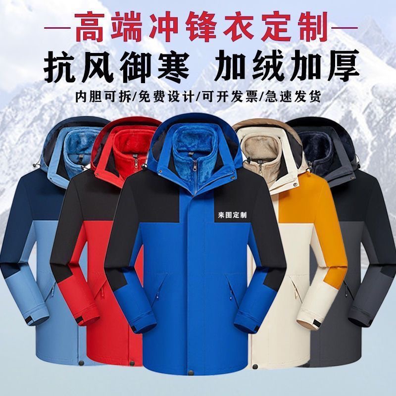 冲锋衣定制工作服logo秋冬季加绒保暖加厚外套订做工作服印字户外