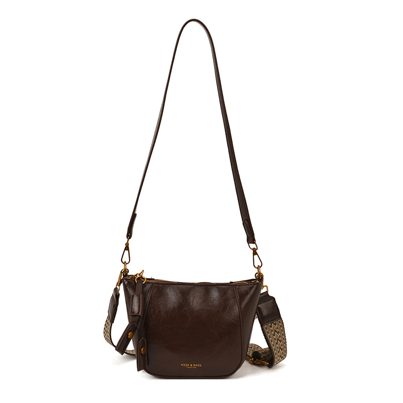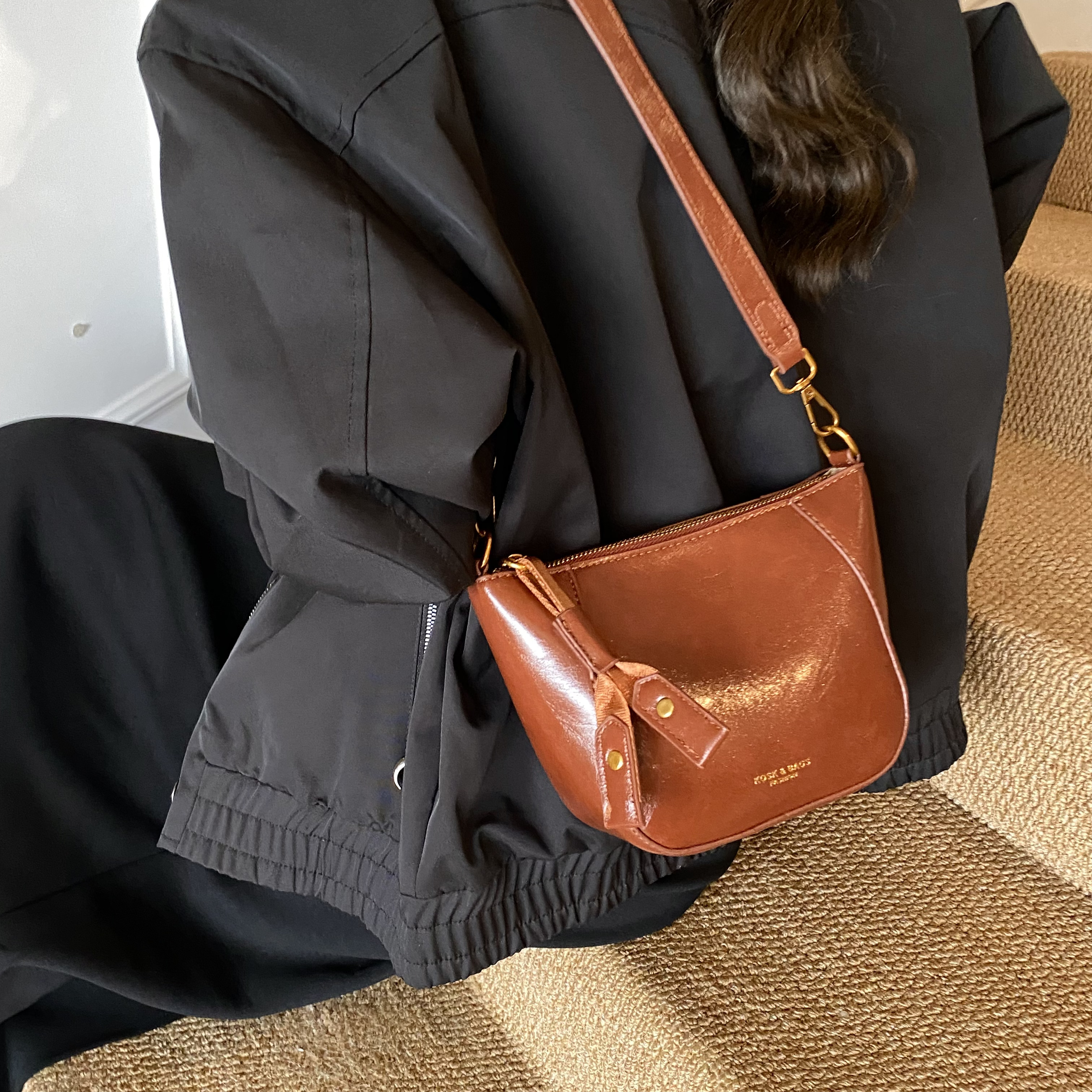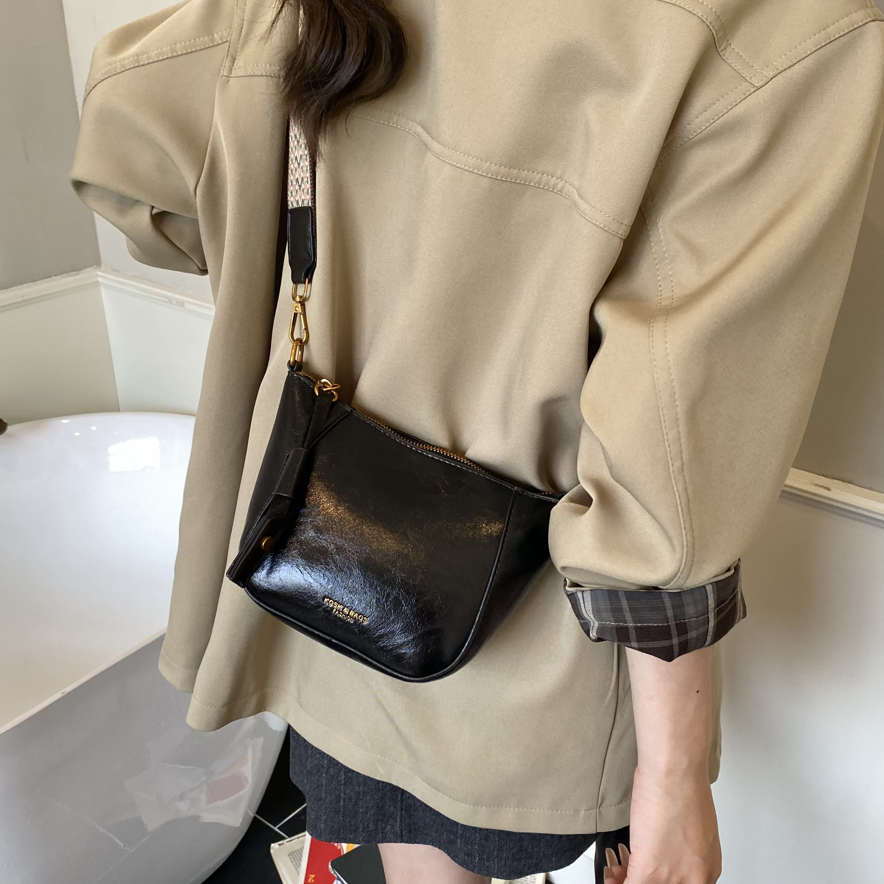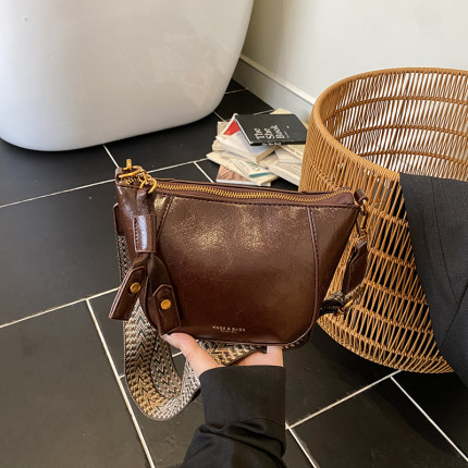 LAOYJA复古油蜡皮宽带斜挎贝壳包