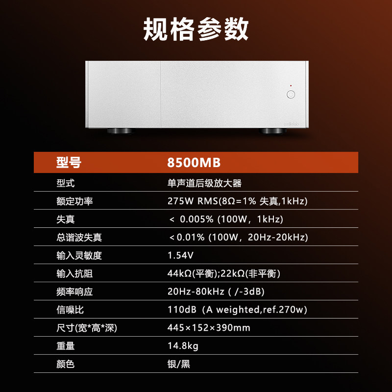 英国audiolab傲立8500MB 单声道纯后级放大器 功放大功率275W家用