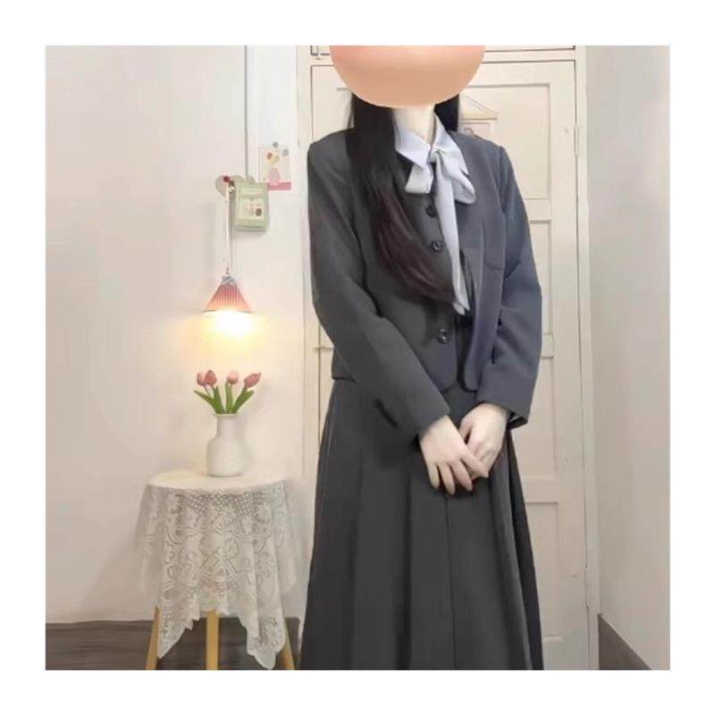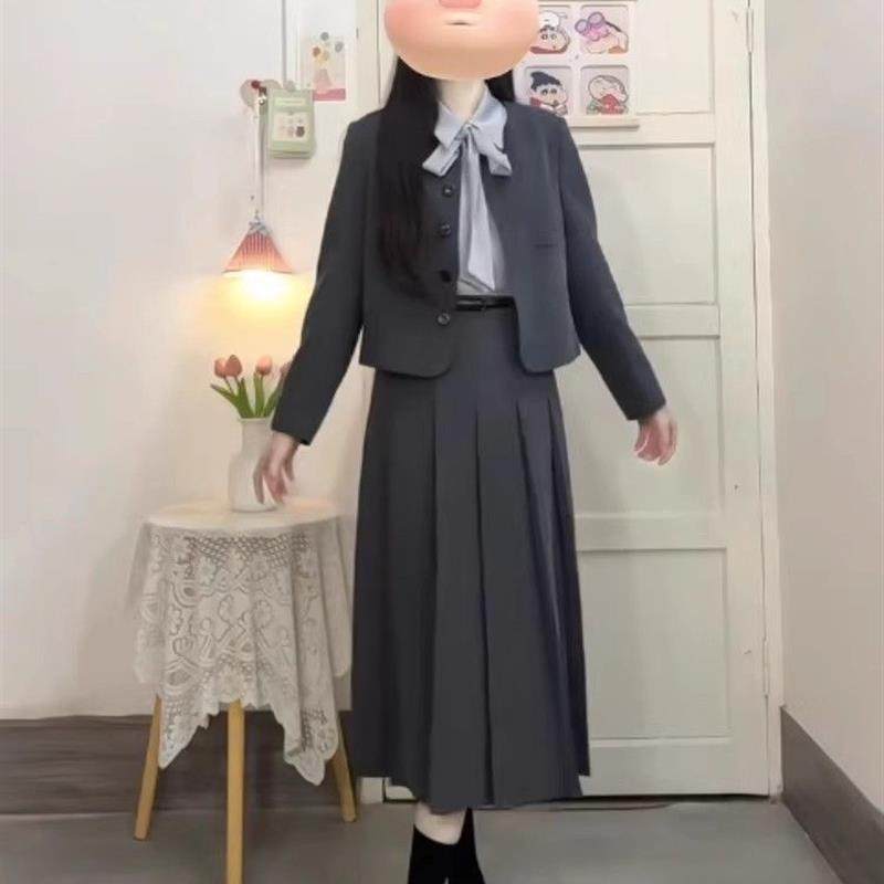 灰色西装套装女秋季新款小个子通勤面试正装休闲西服百褶裙两件套