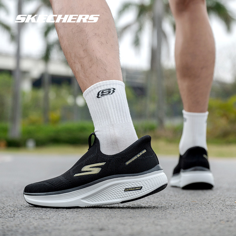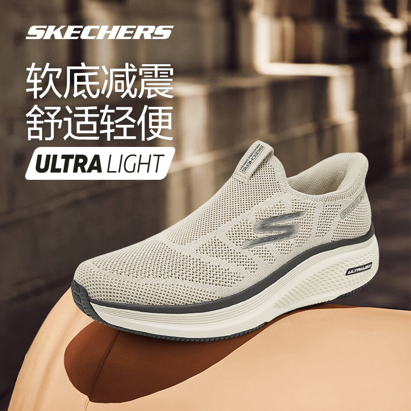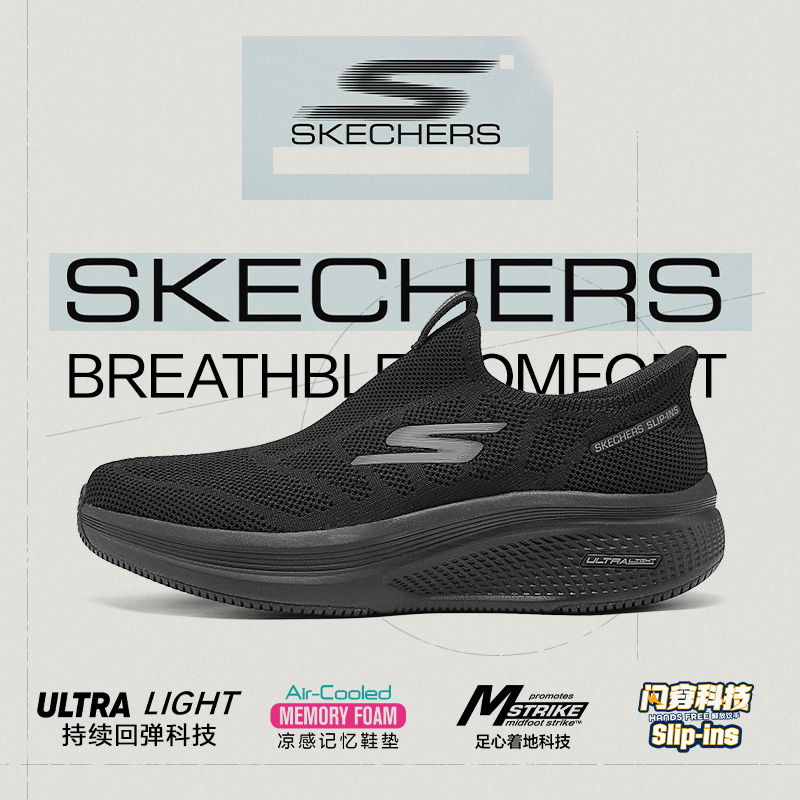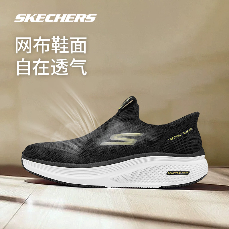 斯凯奇男鞋2025新款网面透气闪穿鞋一脚蹬健步鞋软底休闲运动鞋