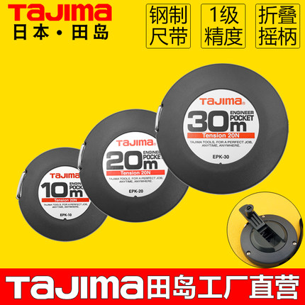 日本TaJIma田岛钢卷尺10米20米30米卷尺手摇进口盒尺工程测量尺子