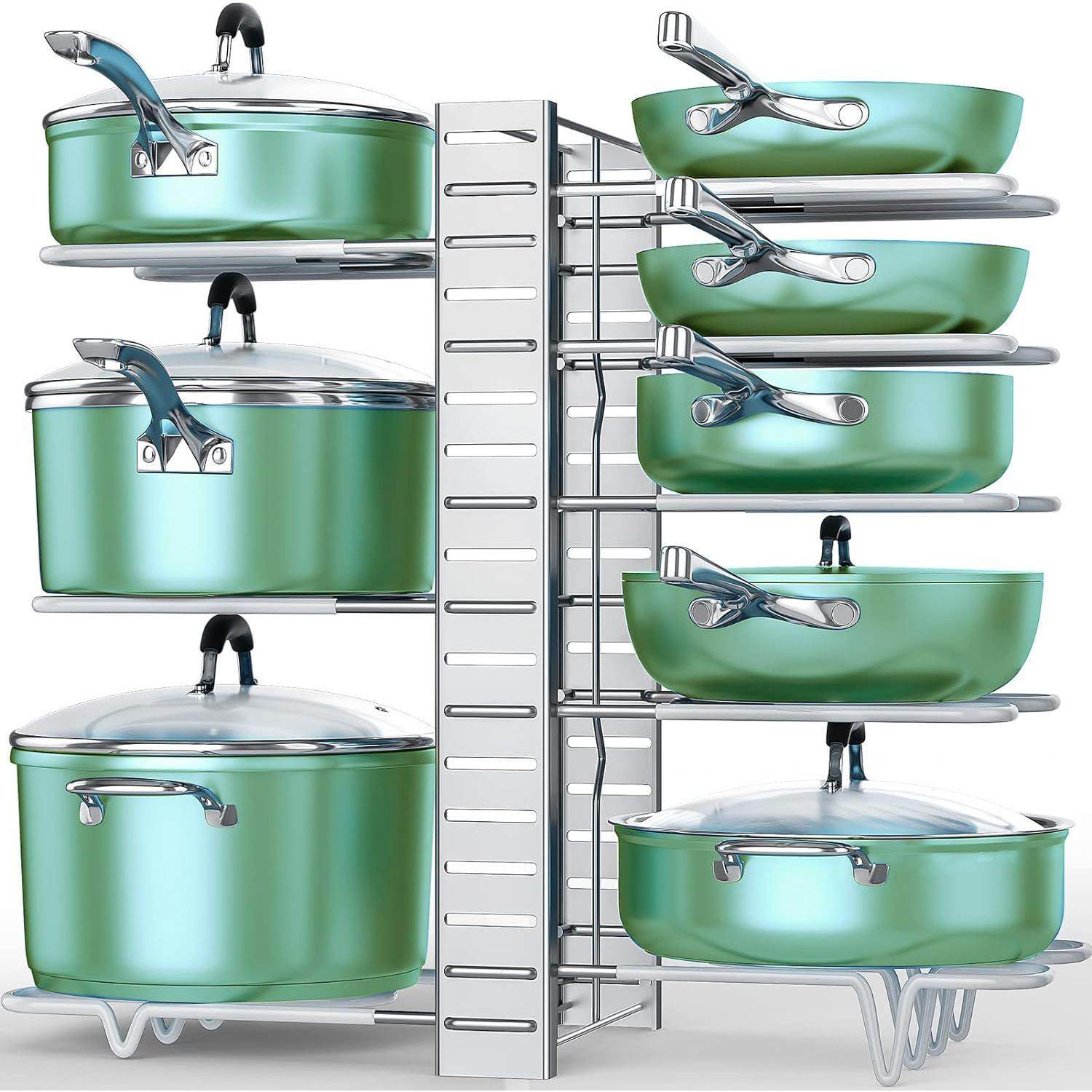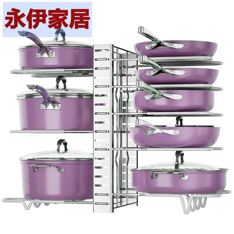 永伊新品家用免打孔双边锅架不锈钢锅架厨房分层锅盖架厨具收纳架