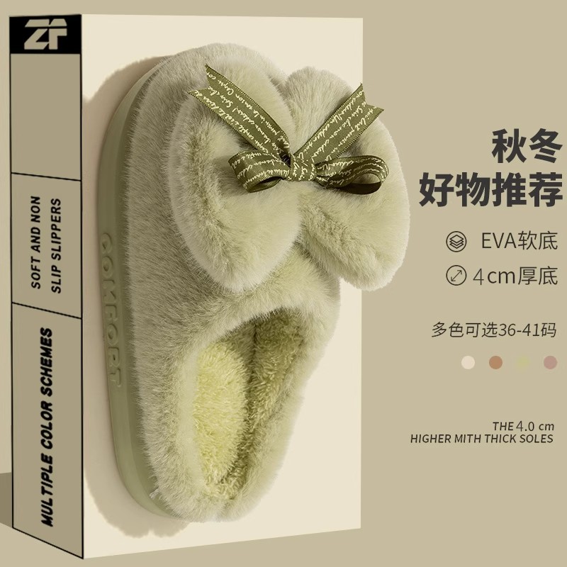 日本进口毛绒棉拖鞋女士秋冬季室内居家加绒保暖包头可爱棉拖鞋女