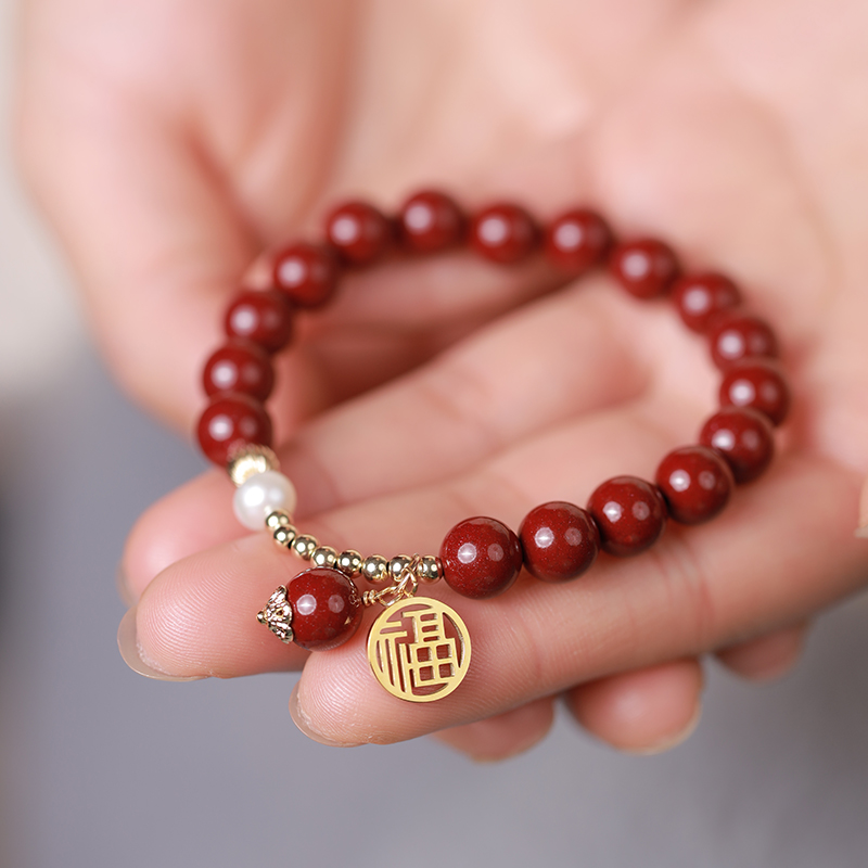 高含量紫金砂朱砂手串14K金福牌手链可调节女送闺蜜款本命年礼物