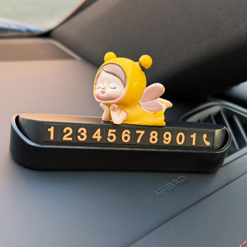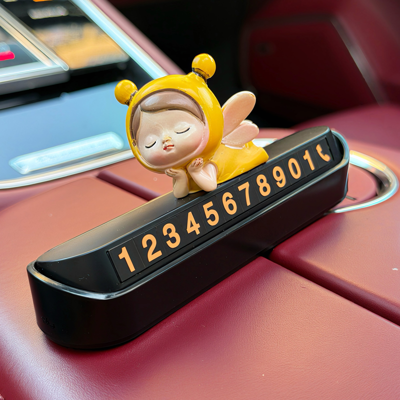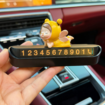 小蜜蜂汽车临时停车卡可隐藏挪车电话号码牌可爱内饰女生装饰用品