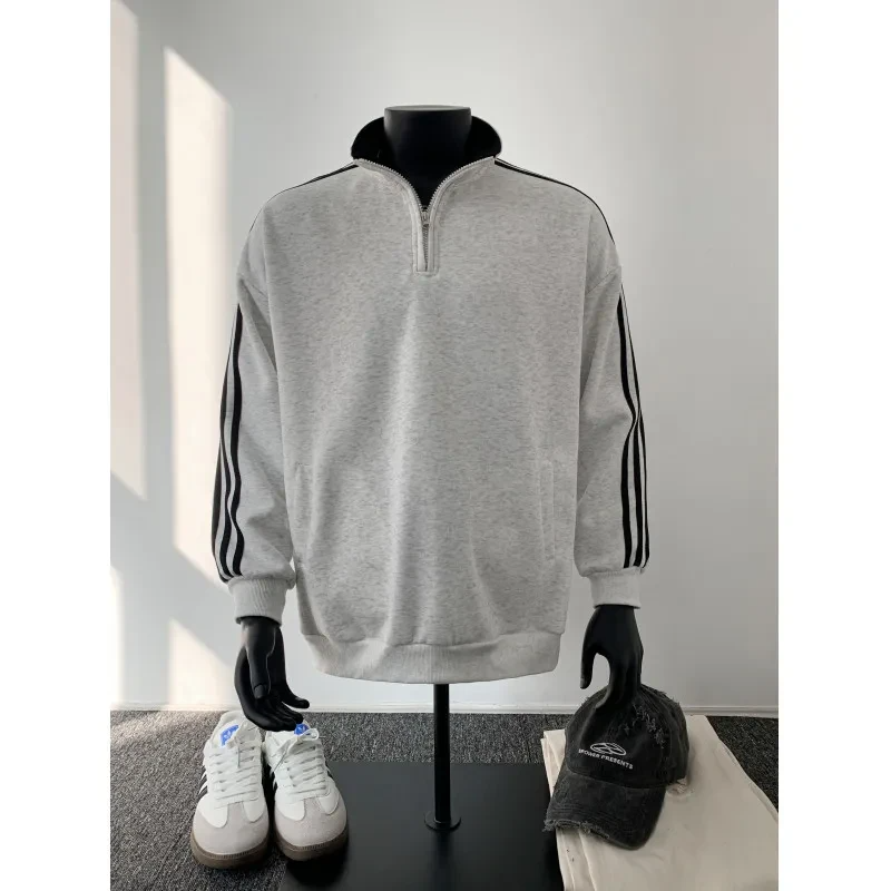 大码300斤cleanfit半拉链卫衣男春秋新款学院风潮流运动无帽上衣
