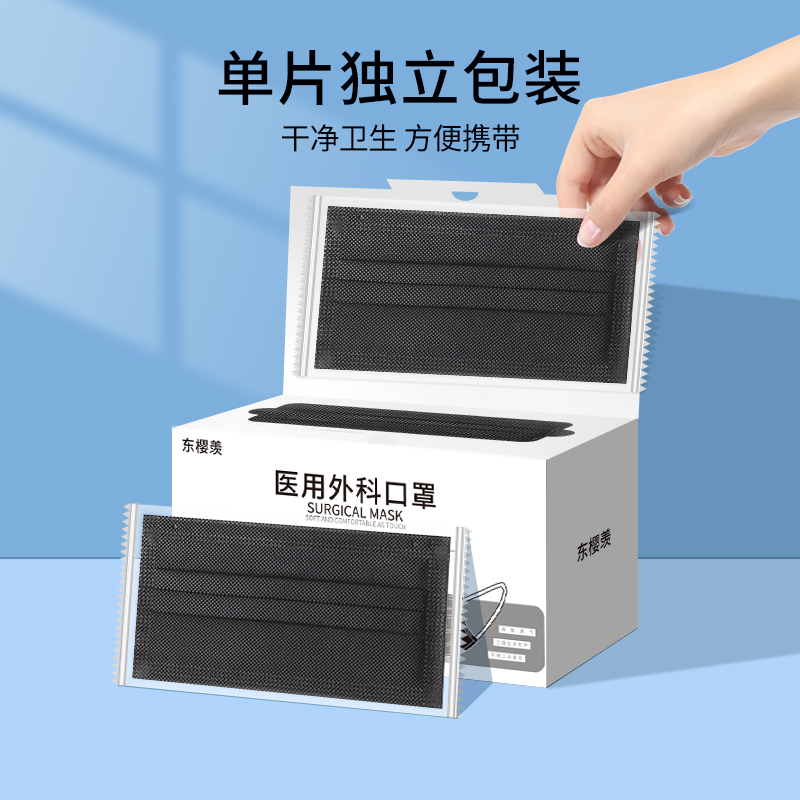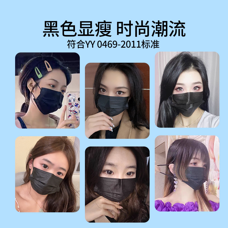 黑色医用外科口罩一次性医疗官方正品旗舰店高颜值女男潮款秋冬款