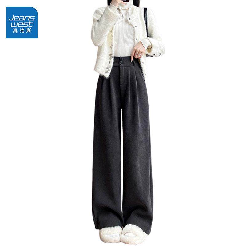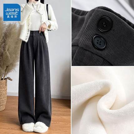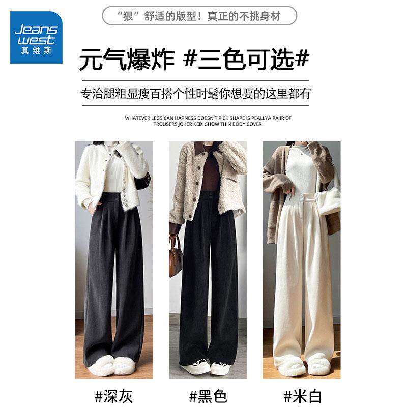 GL真维斯女装加绒加厚阔腿裤2025新款冬季小个子宽松直筒休闲裤子