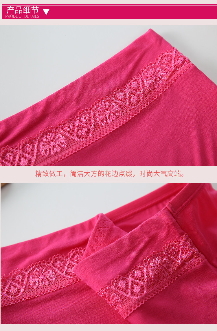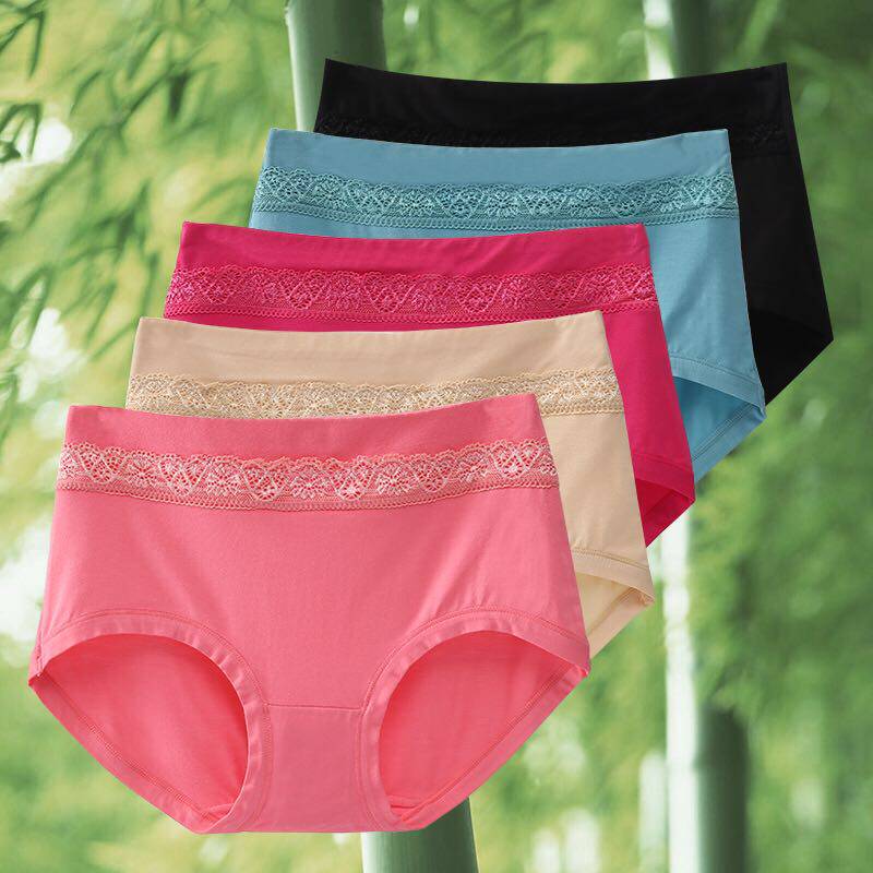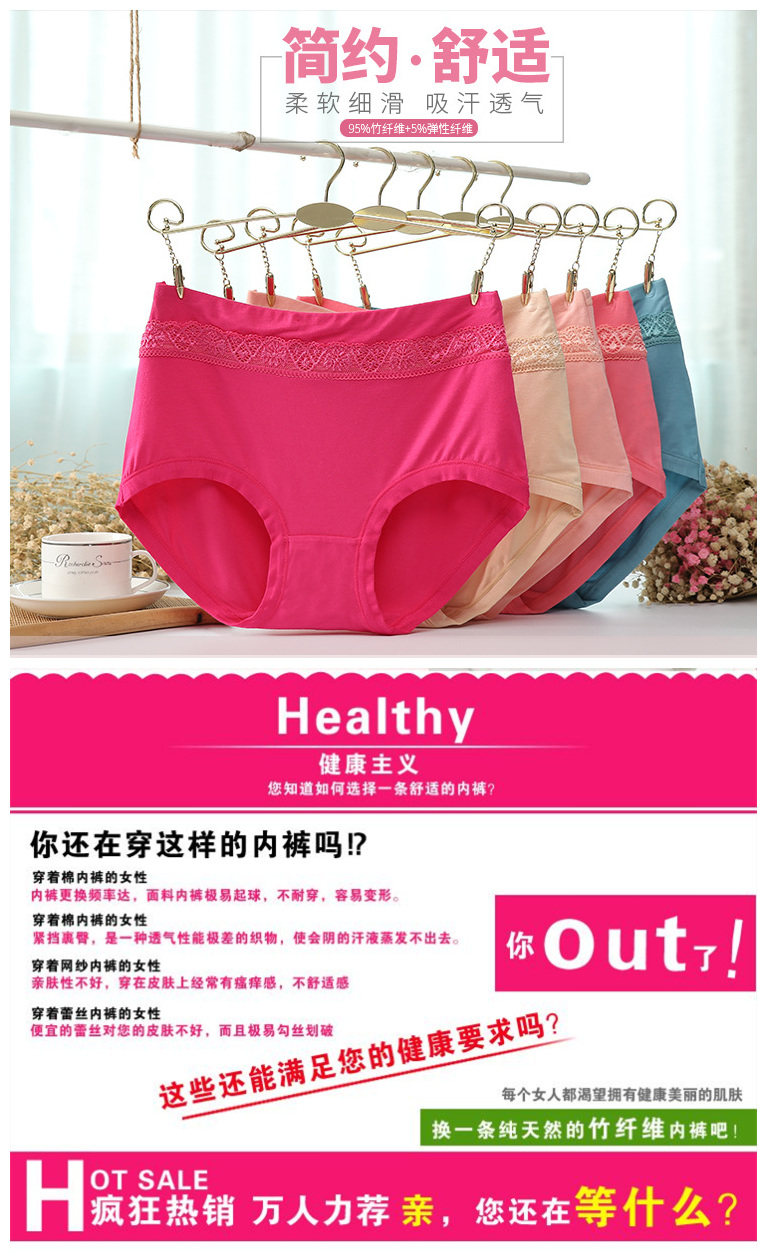 5条装竹纤维中腰内裤女纯棉质莫代尔胖MM大码蕾丝边透气三角裤女