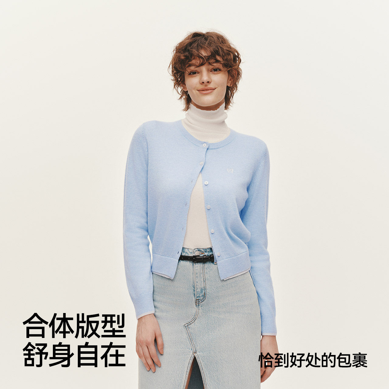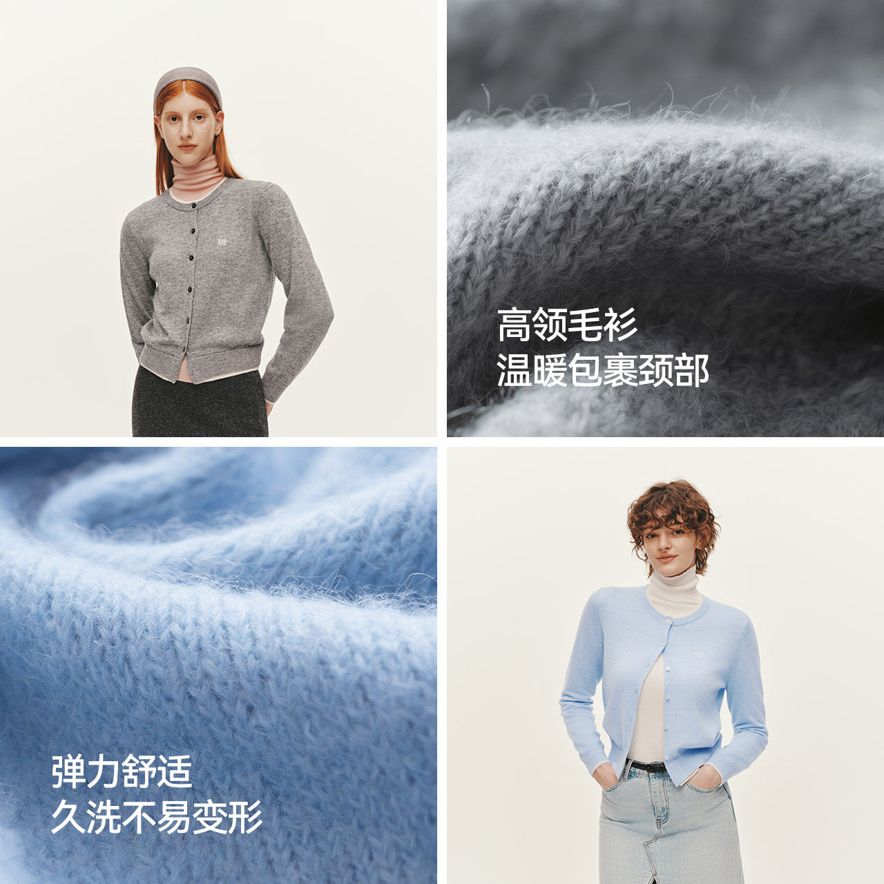 森马针织开衫女短款假两件圆领显瘦2025冬新款刺绣含羊毛毛衫气质
