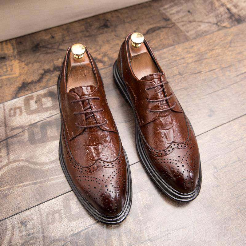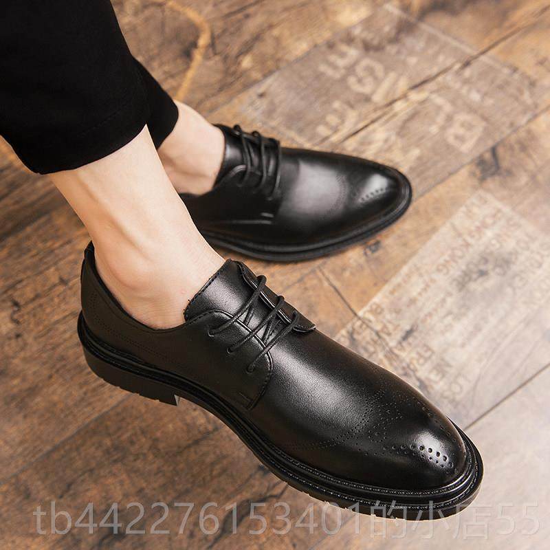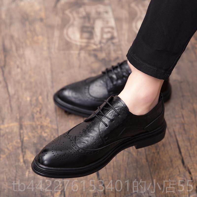 正品春季布洛克雕花男鞋英伦韩版休青年尖头增高黑商色务皮正装闲
