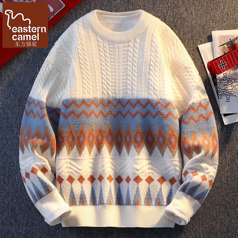 撞色拼接毛衣男款冬季加厚保暖打底衫男士针织衫痞帅休闲毛线衣服