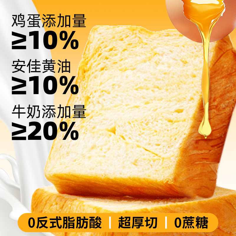 丹香海盐不甜黄油厚切吐司面包全面手撕面包早餐整箱三明治零食