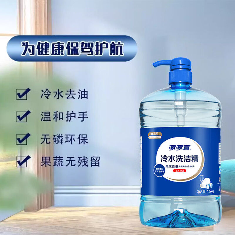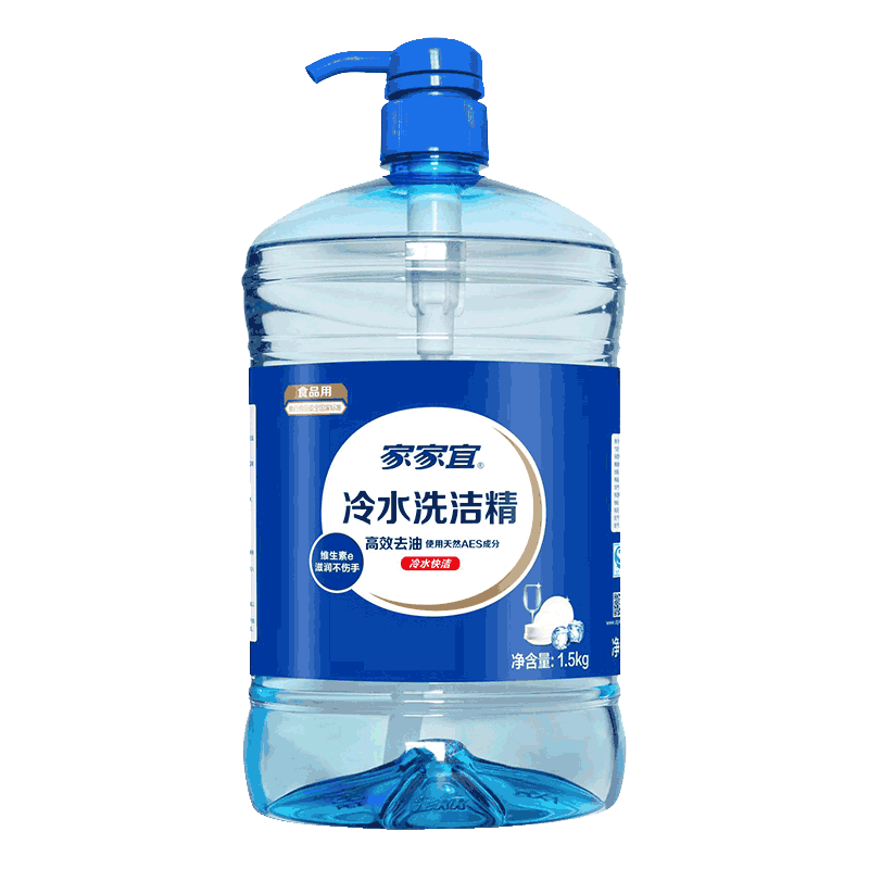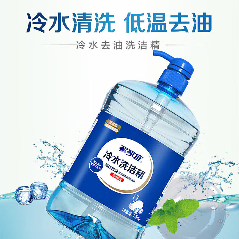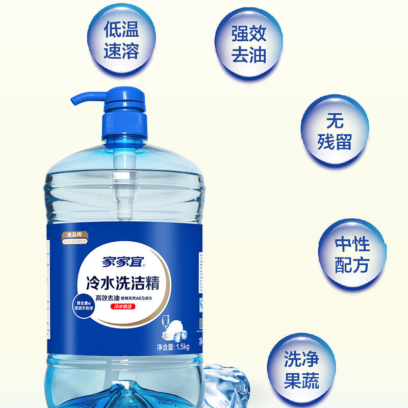 家家宜冷水洗洁精3斤装食品级低温速溶餐具高效去油大桶装家用