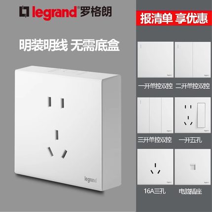 罗格朗白色明装五孔十孔开关插座