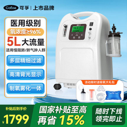 国家补贴】可孚医用制氧机5L升流量便携家用吸氧机老人氧气机雾化