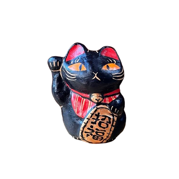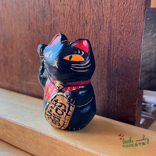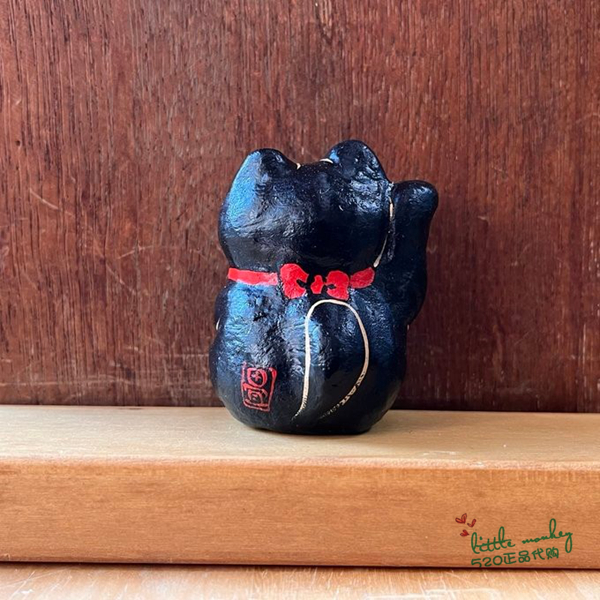 日本代购 招财猫 黑色 职人手工 可爱传统和风张子风开运招福摆件