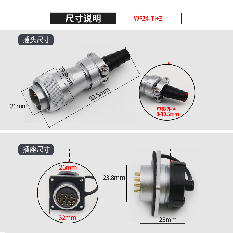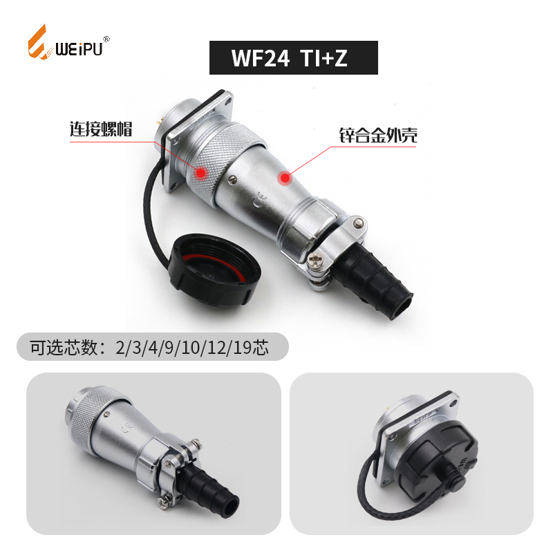 威浦WF24航空插头插座2-3-4-9针-10芯12芯19芯防水公母连接器电源