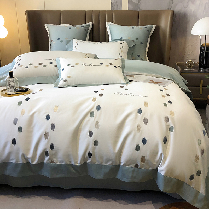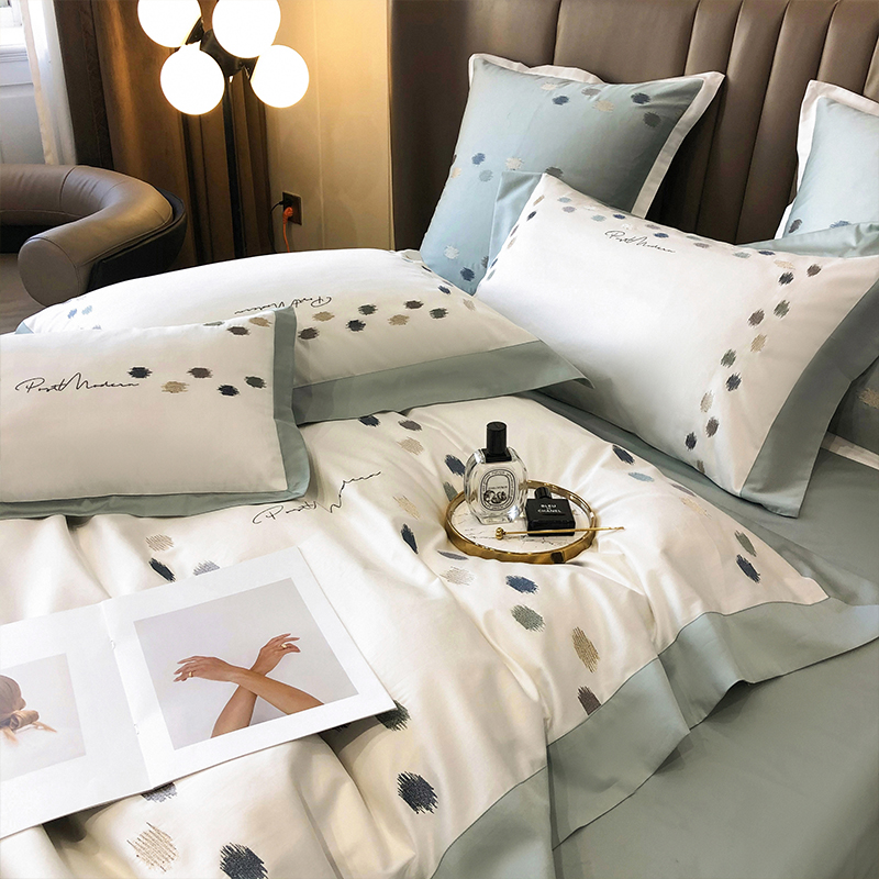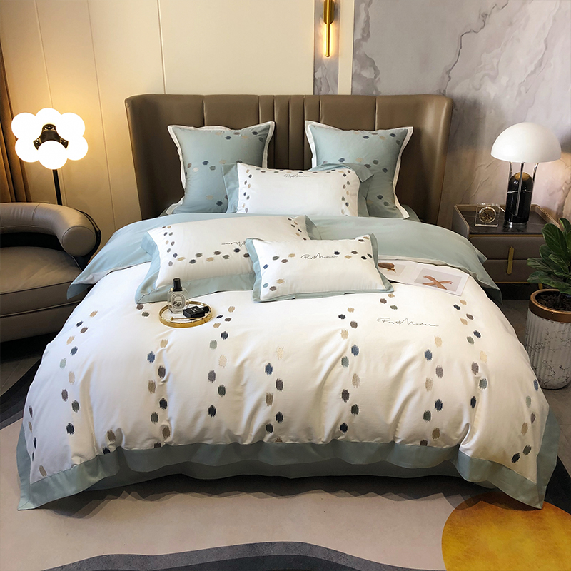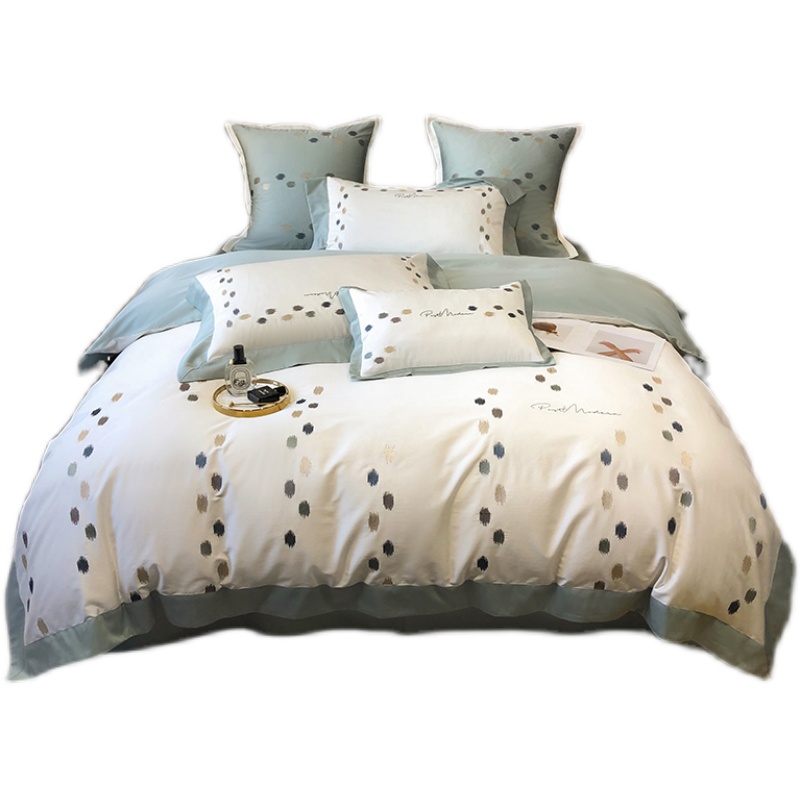 极速高端仪式感简约花卉刺绣y100支四件套全棉全棉贡缎床上用品