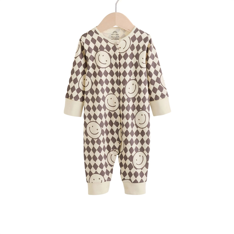 英国NEXT进口婴幼新生儿酷帅笑脸家居睡衣秋款包脚连体衣英伦哈衣