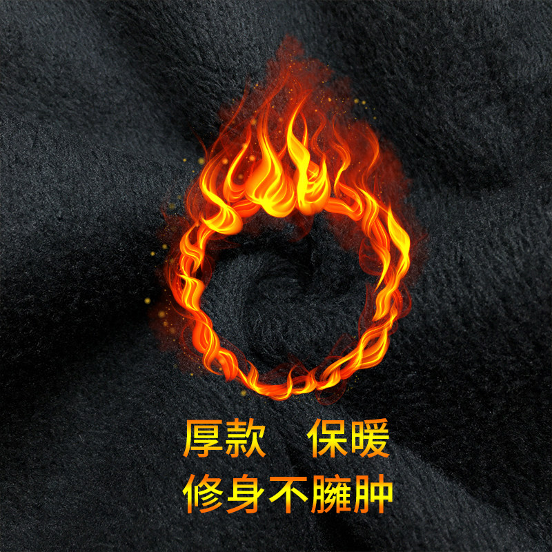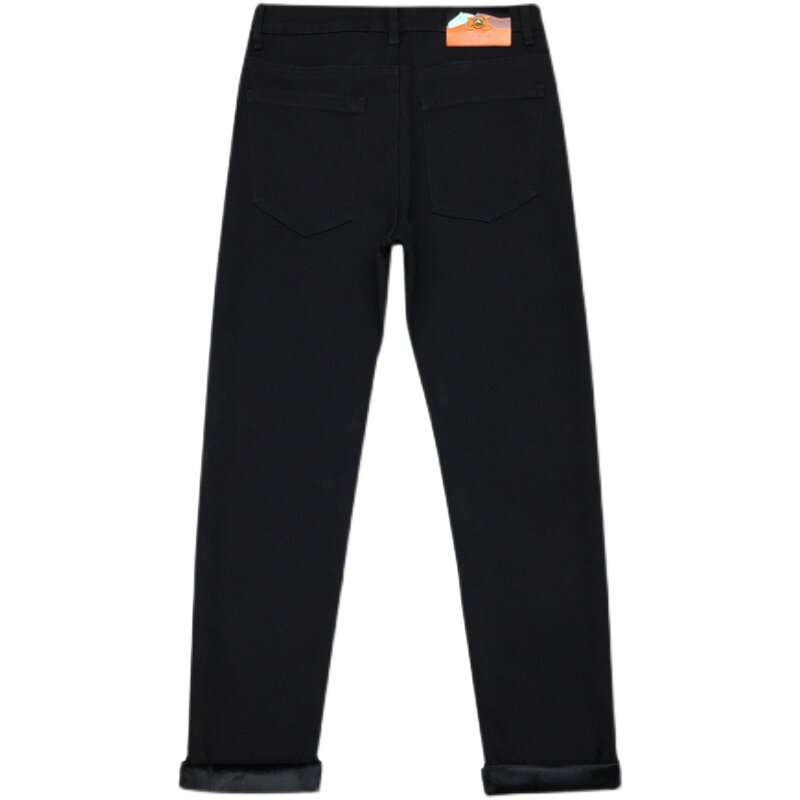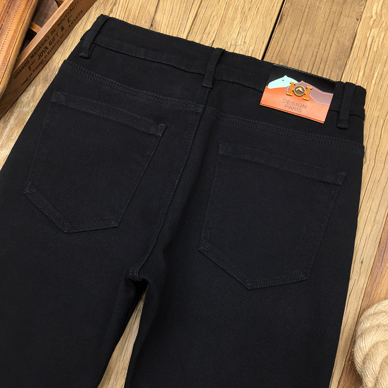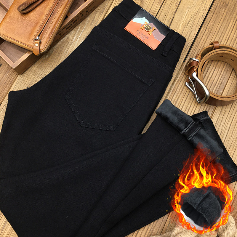黑色加绒加厚牛仔裤男秋冬款保暖欧货修身小脚休闲黑色厚绒长裤