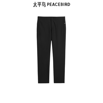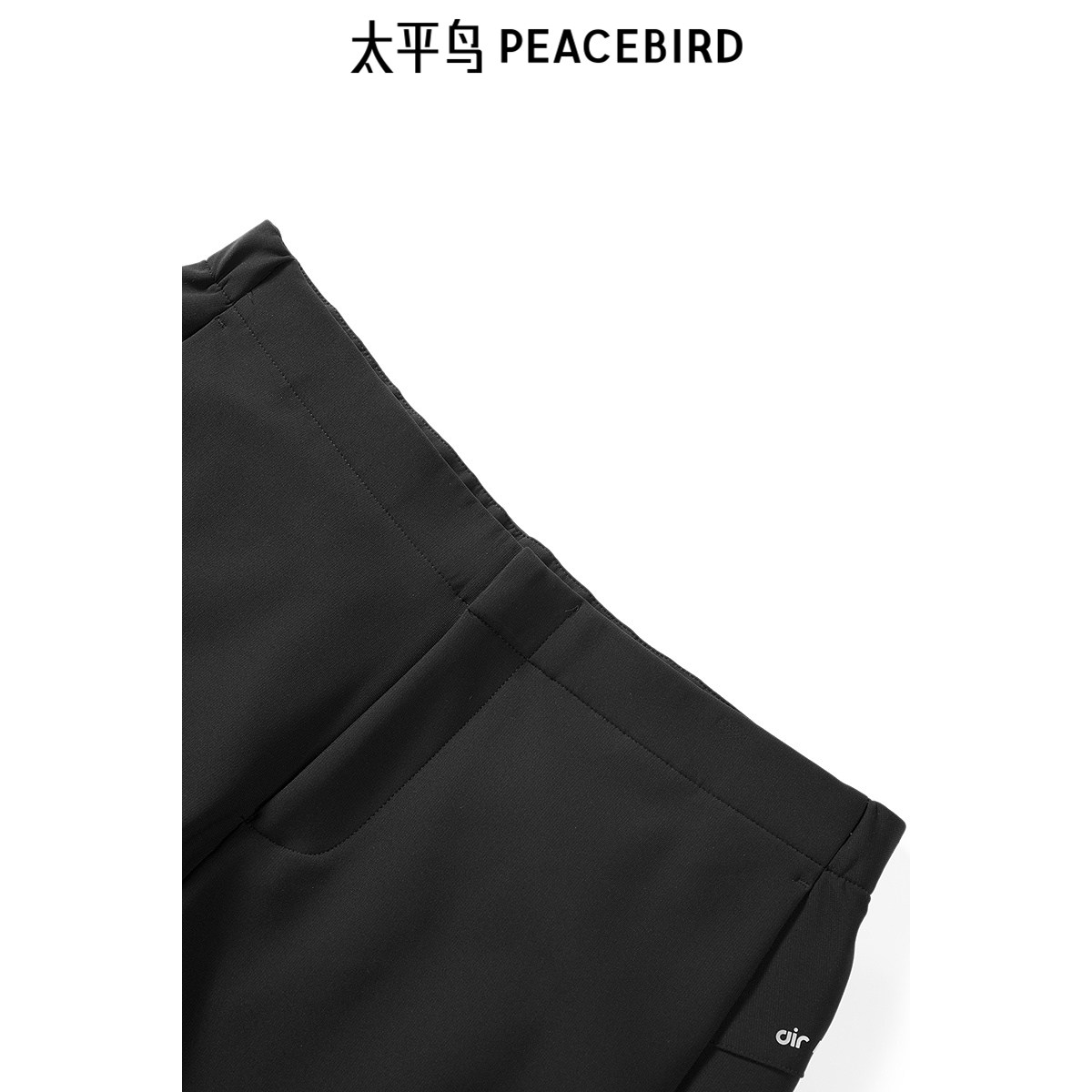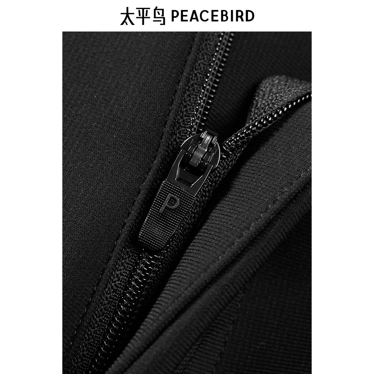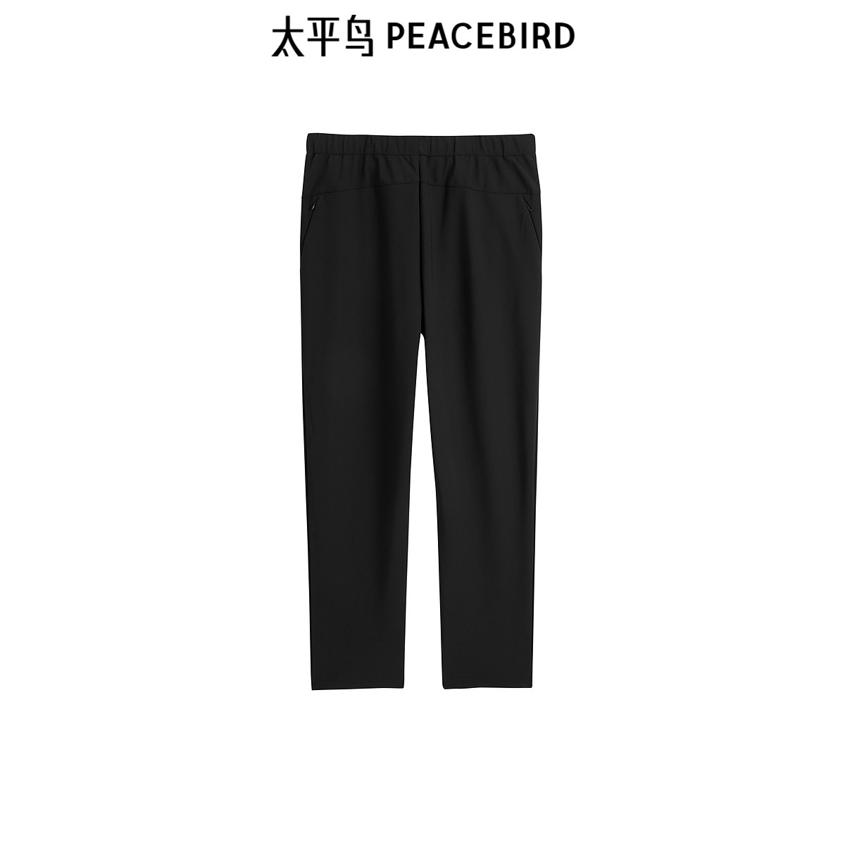 太平鸟男装 冬季黑色直筒休闲裤潮流撞色印花百搭时尚运动长裤