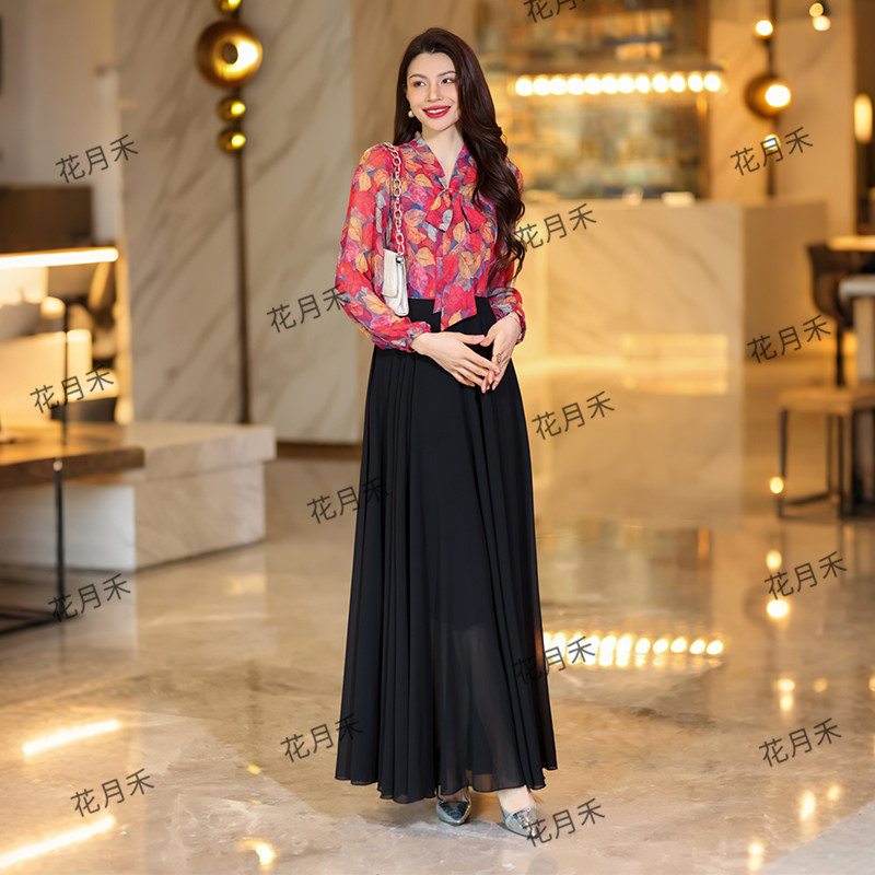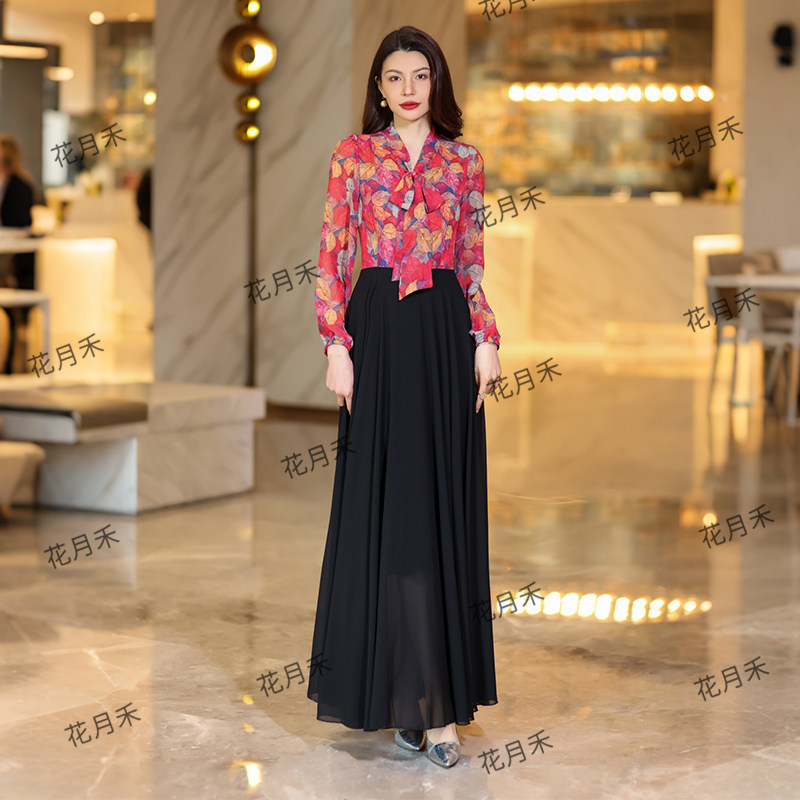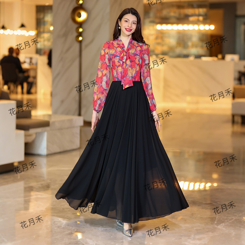 2025年新款春秋冬长袖气质优雅连衣裙旅游度假长裙雪纺裙沙滩裙子