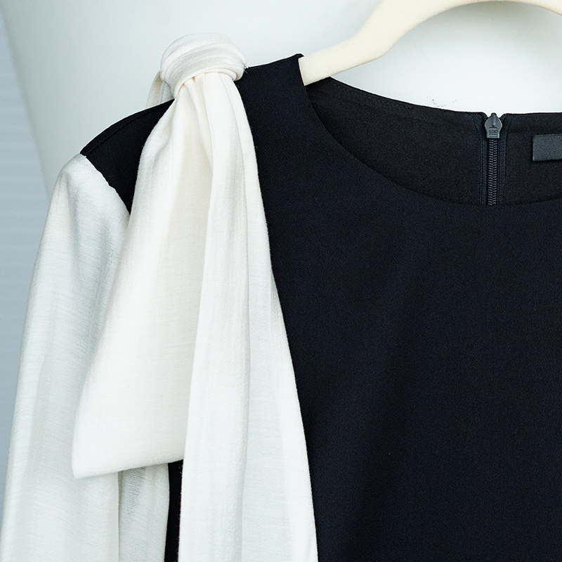 罗衣高级拼接大摆连衣裙女2025秋季新款精致蝴蝶结黑色裙子09139