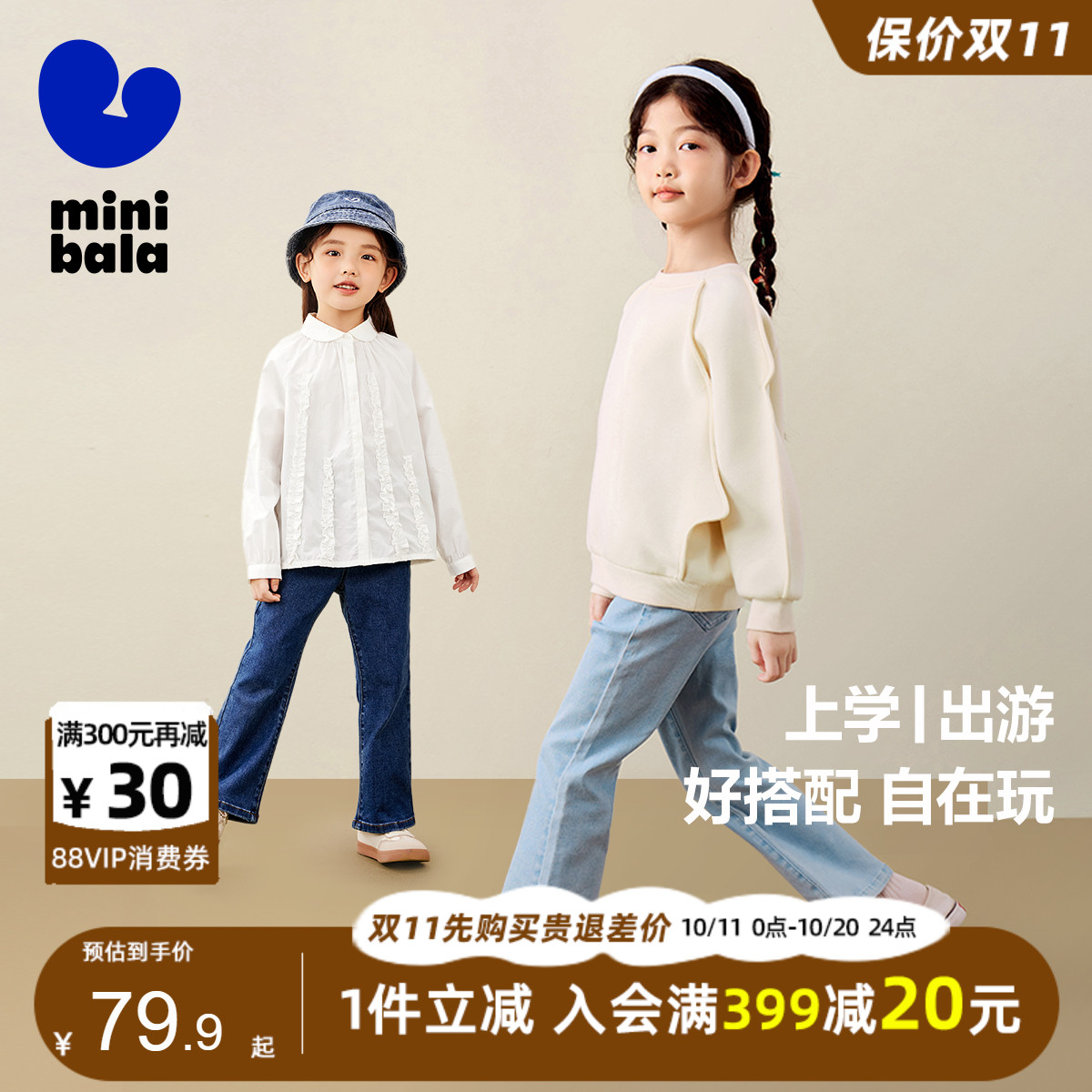 迷你巴拉巴拉女童长裤2025春秋装中大童宽松洋气儿童牛仔喇叭裤子