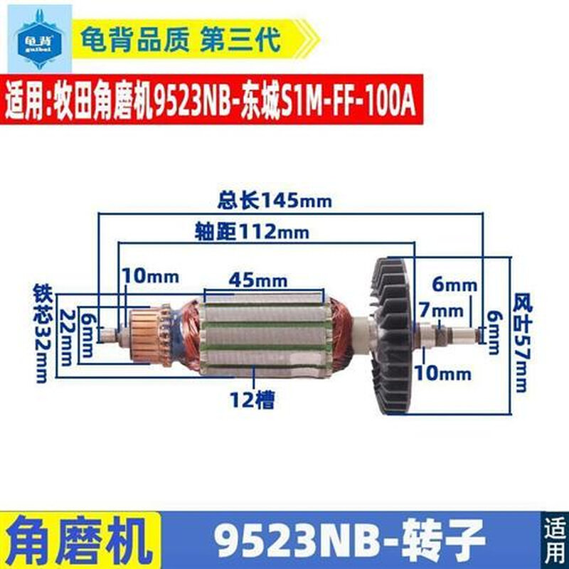 角磨机磨光机转子大全100配件通用配锐奇9913 6-100 9523 F3 9553